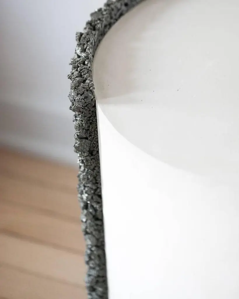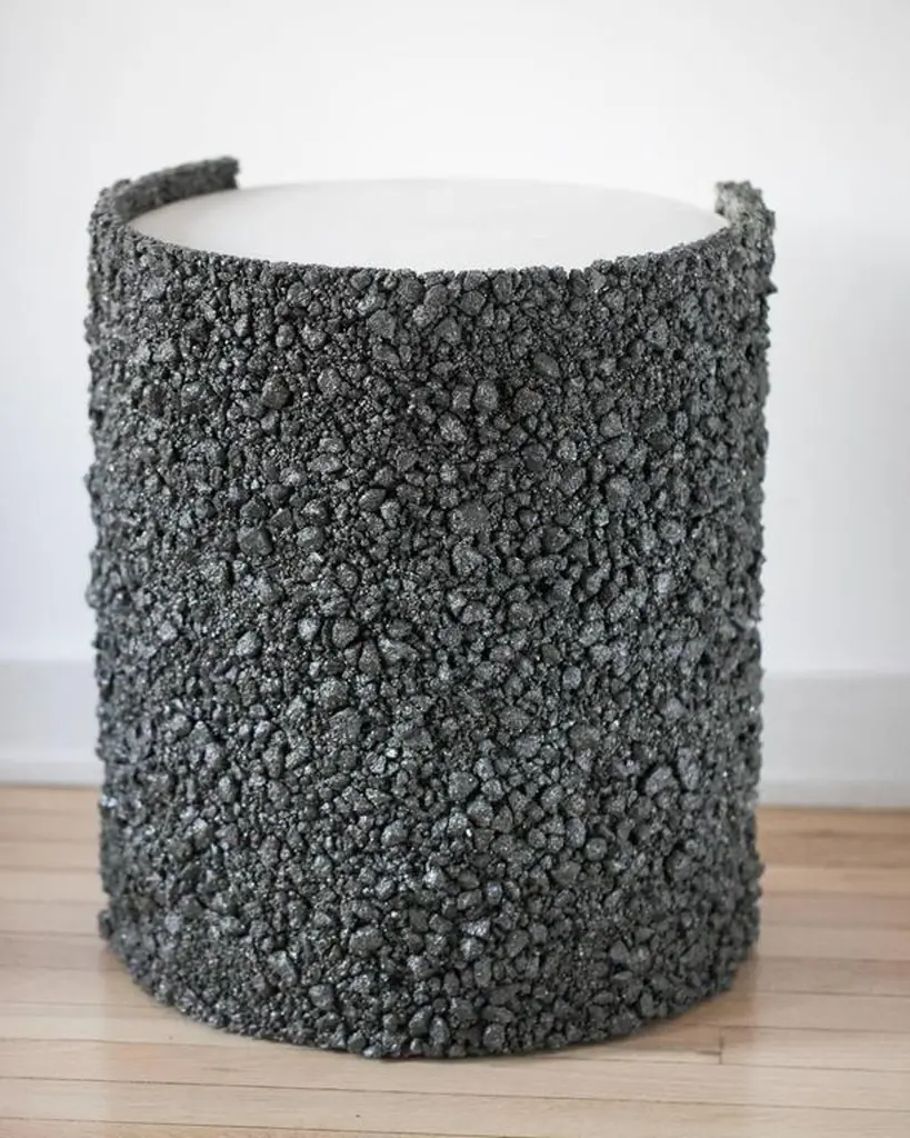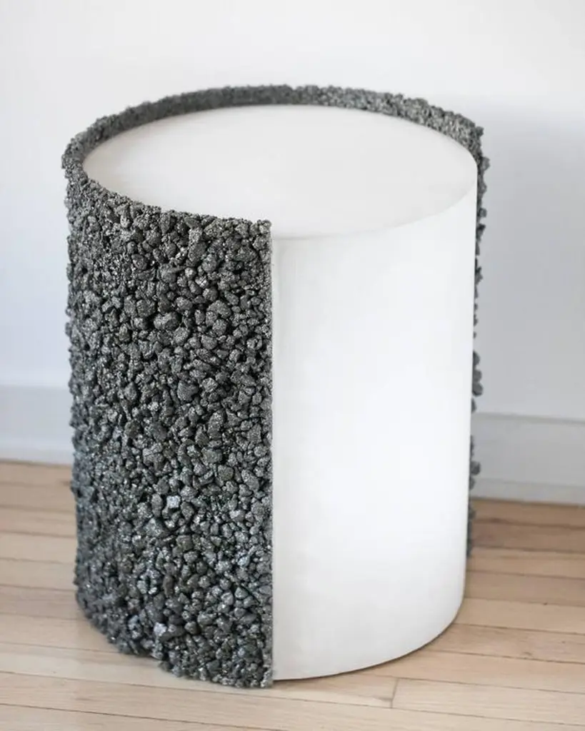 Hand Made Pyrite Of Mexico And White Plaster Drum, Side Table By Samuel Amoia