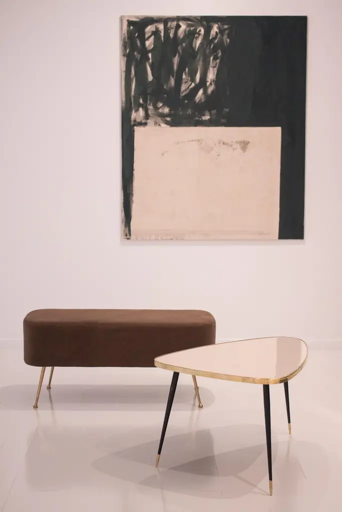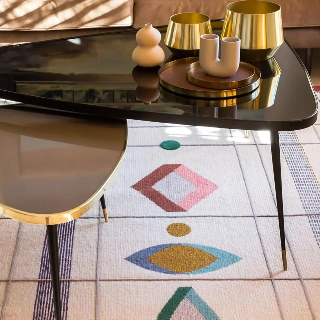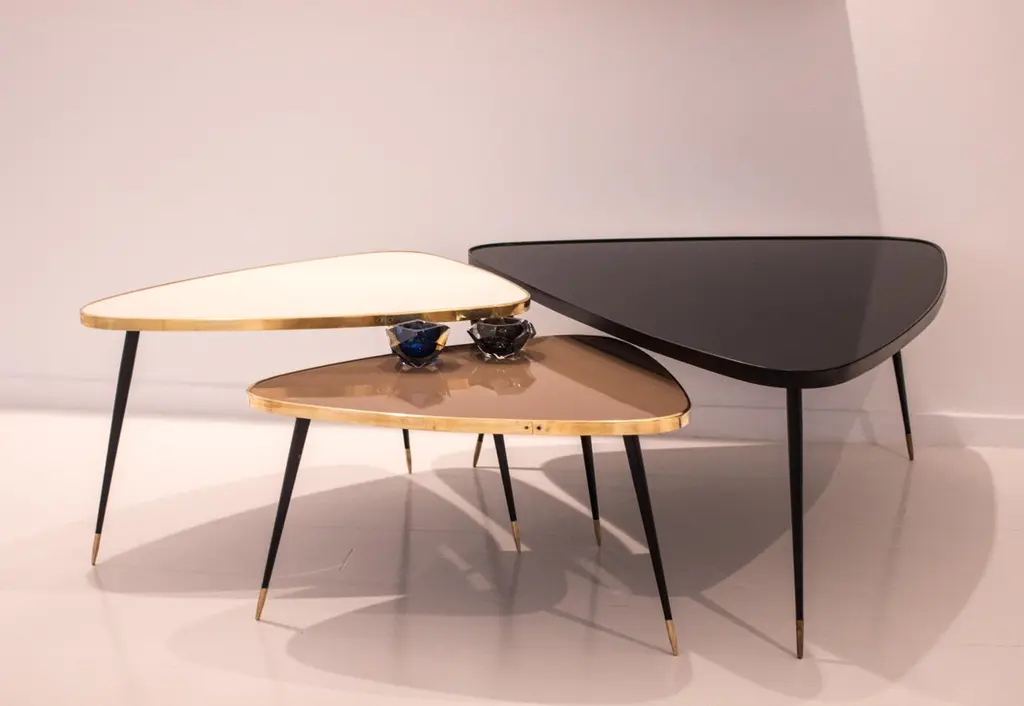 Twist Collection - side table with steel outline - small height 16,5" or 18.1" // 42 or 46 cmSmall (16,5"): 27,5x23,6x16,5 inches 70x60x42 cmSmall (18,1"): 27,5x23,6x18,1 inches 70x60x46 cmThe Twist table collection is a line of elegant and modern furniture that is sure to catch the eye in any space. Each table in the collection comes in six different sizes, meaning there is an option for every need and space. In addition, there are several colors available to choose from, allowing for customization to perfectly fit home or office decor.The three-legged structure with a brass base is one of the standout features of this collection. This base gives each table a sleek and sophisticated look, while also providing exceptional stability and durability. Additionally, the table legs have a twisted design that creates an impressive and attractive visual effect.The Twist table collection is not only a beautiful and functional addition to any space, but each table is also handcrafted in Spain. This means that every piece is made with meticulous attention to detail, ensuring that each table is of the highest quality. The combination of expert craftsmanship and premium materials used in the manufacturing process ensures that each table is not only beautiful, but also durable and long-lasting. These tables are ideal for both daily use and special occasions and fit in with any decor style. Overall, the Twist collection is an excellent choice for those seeking modern and elegant furniture that is also functional and long-lasting.It can work as a cocktail table or night stand. In combination with other heights and top dimension it can be a nesting table as it appears on the images