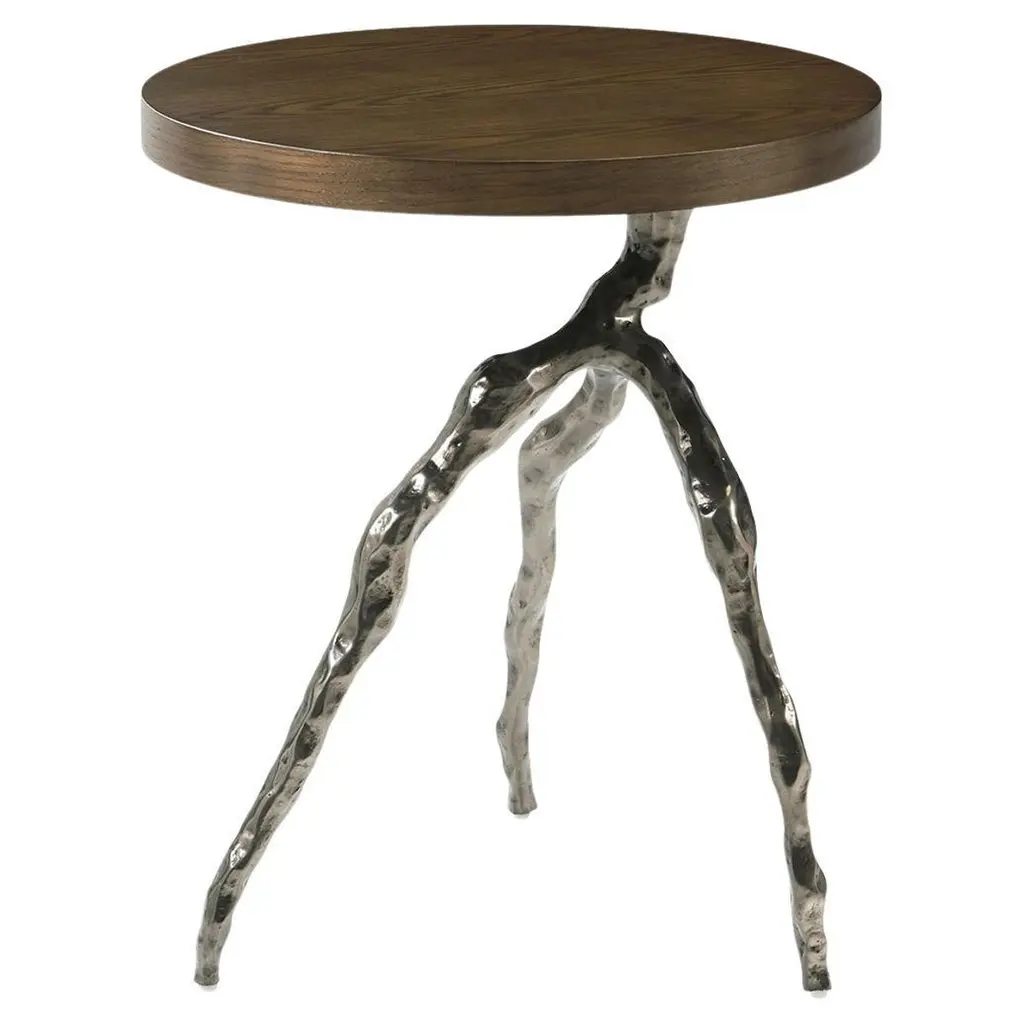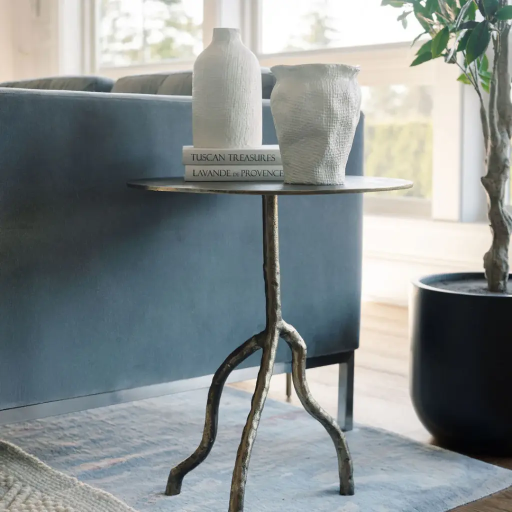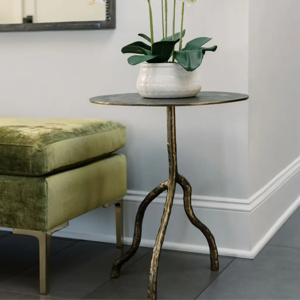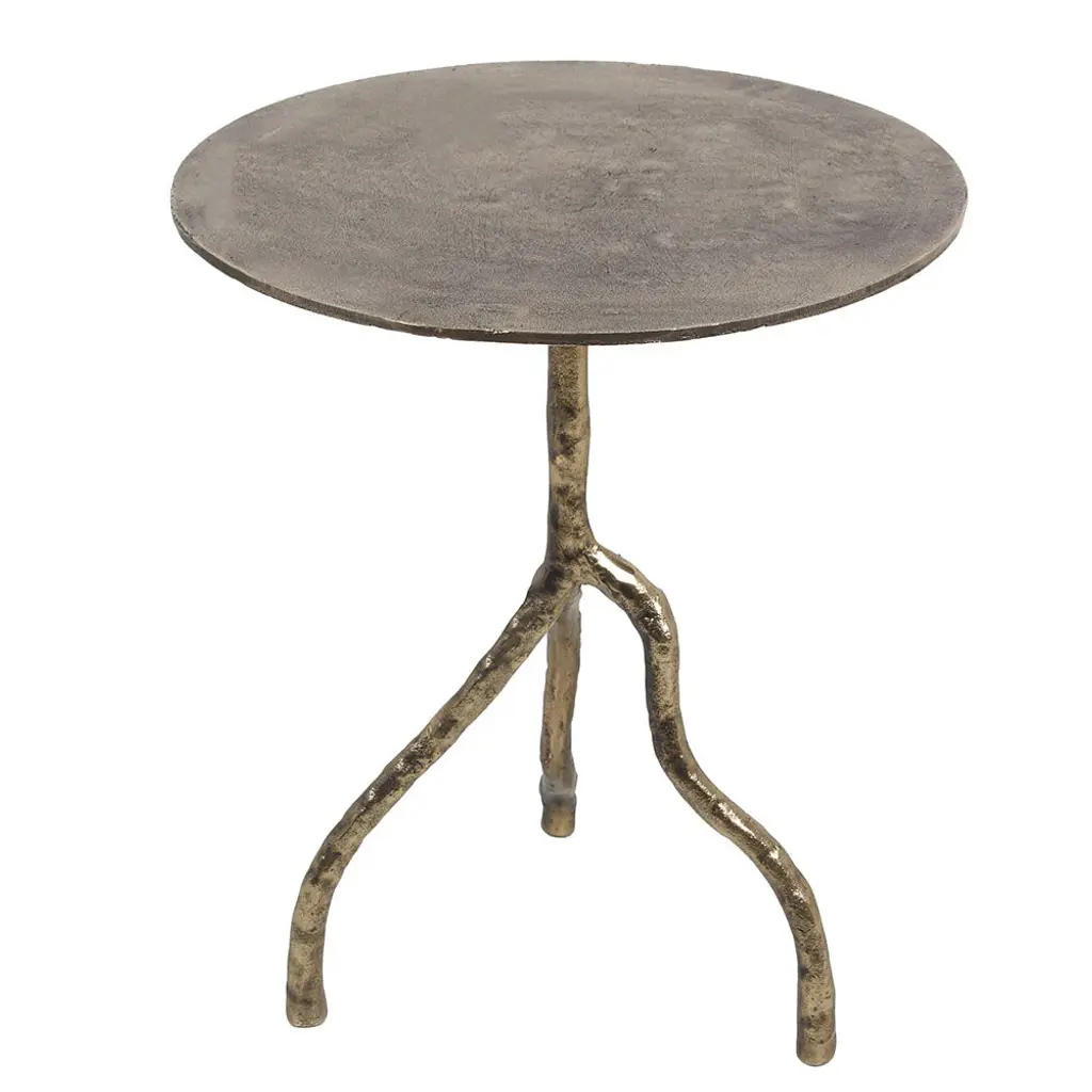 Handcrafted Antique Brass Aluminum Accent Table, 22 In