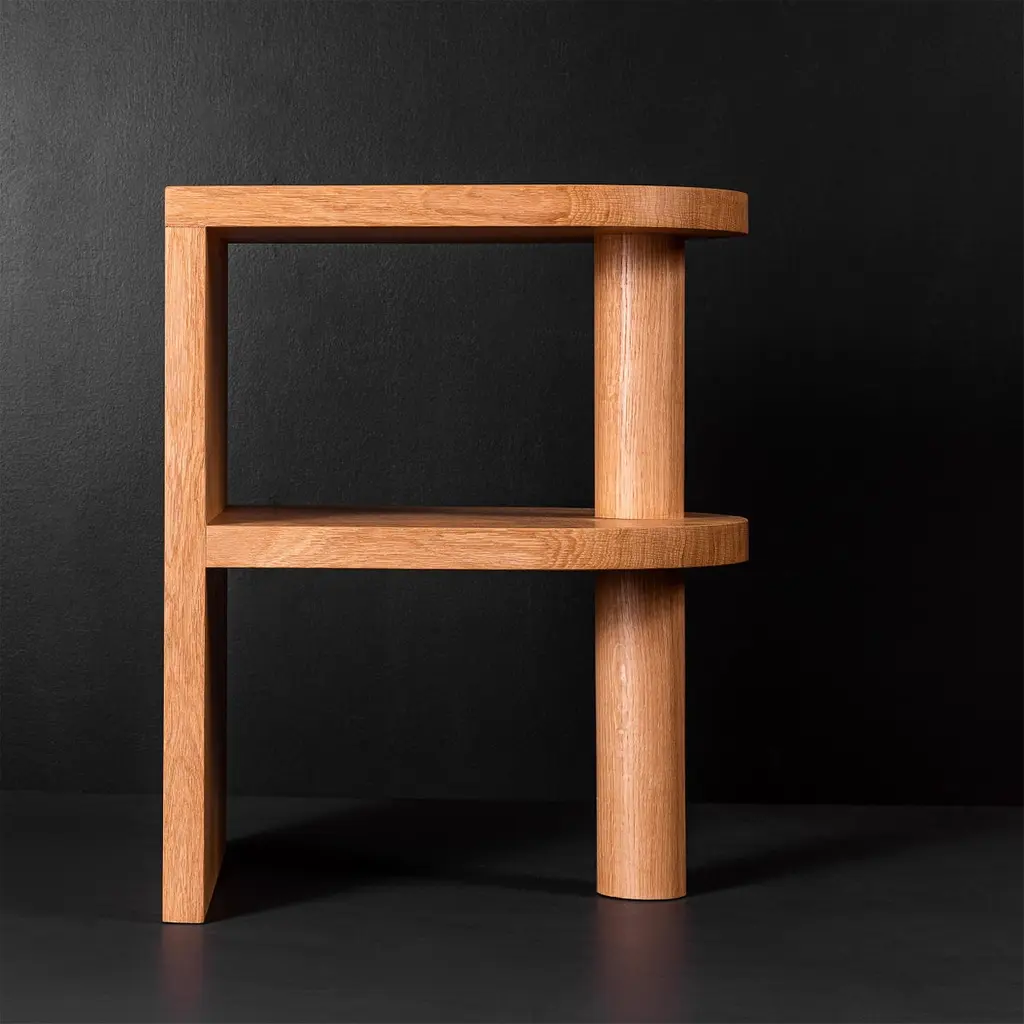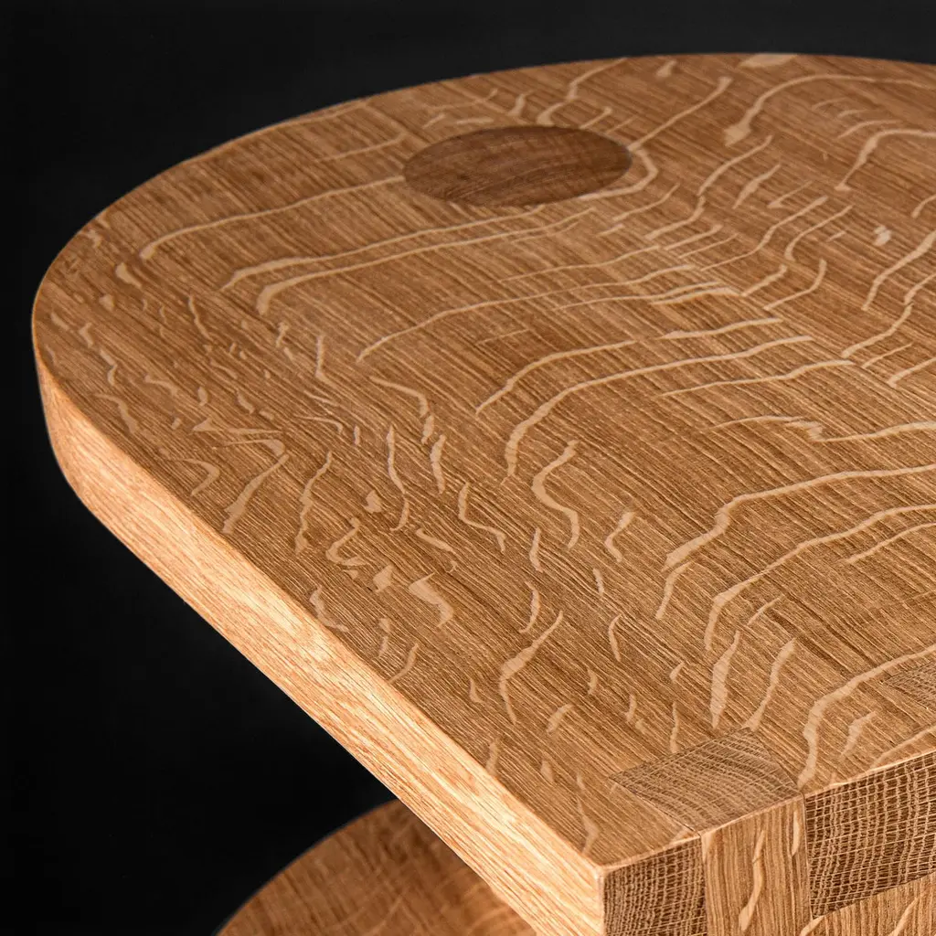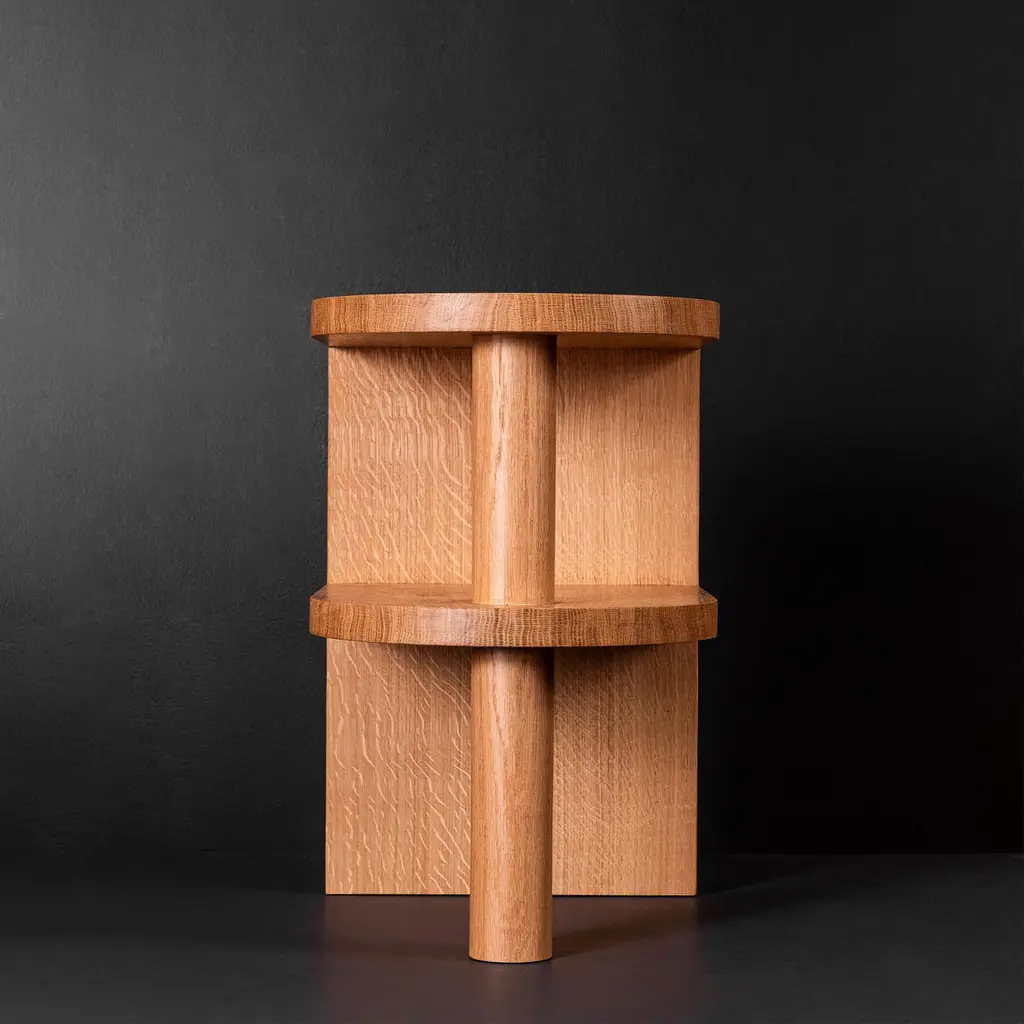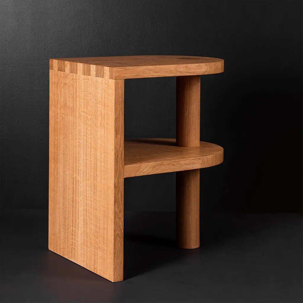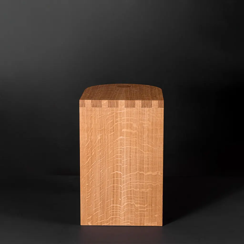 An adapted version of our architectural oak pillar nightstands or end tables. Designed and handcrafted in England using traditional cabinetry techniques with the most beautiful and finest English quartersawn oak. Hand-cut large dovetail jointing with turned oak upright column piercing through the sections cut flush and visible to the top surface. A design drawing influences from very early 20th century European modernist architecture.These are unique multi functioning pieces of furniture and are primarily intended for use as nightstands. The top surface has a hidden supporting collar within the surface and can take significant weight. These are substantial, bold and striking pieces of completely handmade furniture, built to last. Finished in very durable eco oil.Custom dimensions are available on request. American Walnut alternatives are shown in final images and are available in our listings/storefront.We design bold and distinctive pieces of furniture – our main objective is combining the design alongside the natural beauty and properties of the raw materials.These timbers and materials are very carefully chosen for each specific design - maintaining our focus on the benefits, visual impact and strengths of what we use. Our regular use of English Quartersawn Oak is one case in point. It has been the beloved timber of fine furniture makers across the world for centuries. It is costly to produce but gives huge benefits and rewards such as its striking medullary rays and superb stability qualities. By utilising these wonderful and naturally occurring features with our contemporary designs we aim to continue creating some very distinct, tactile and idiosyncratic pieces.These are all completely handmade, in very small numbers, by our skilled craftspeople in England.