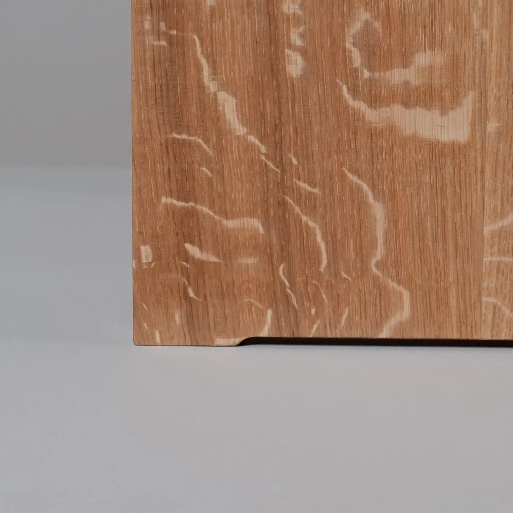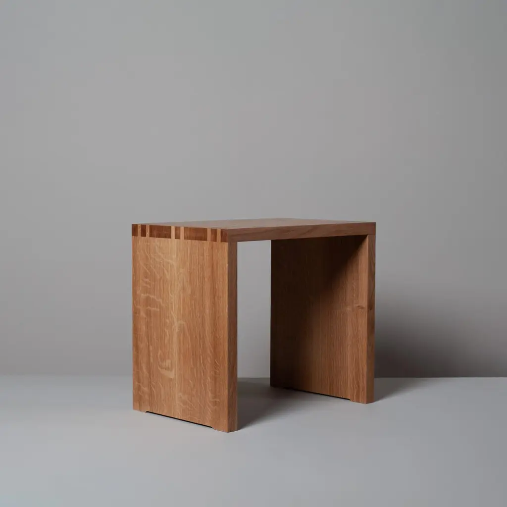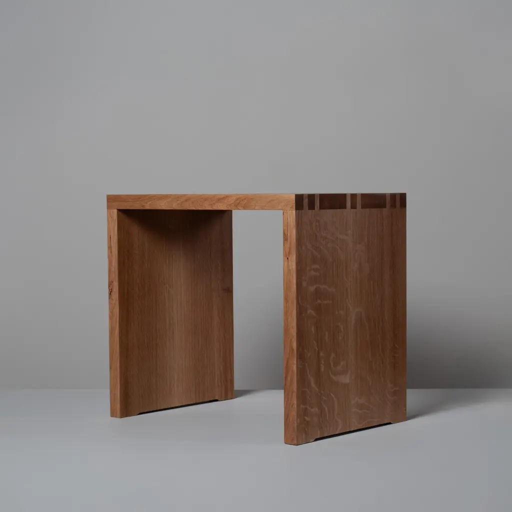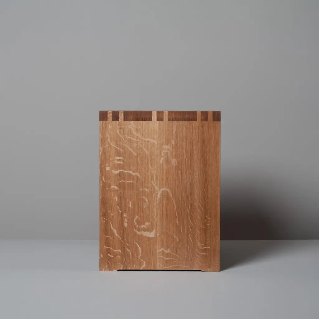 Our new twin dovetail utility night stand table. Designed and handcrafted in England using traditional furniture making techniques. A minimalist multi-function utility piece of furniture transformed with the use of the most beautiful English fully quartersawn oak and bold hand-cut oversized twin dovetail jointing. Finished in highly durable eco oils.A design drawing influences from early japanese minimal modernism.These are unique multi functioning pieces of furniture and are intended for use as side, end tables, night stands or stools. These are substantial and striking pieces of completely handmade furniture, built to last. Custom dimensions are available on request. We design unique and distinctive pieces of furniture – our main objective is combining the design alongside the natural beauty and properties of the raw materials.These timbers and materials are very carefully chosen for each specific design - maintaining our focus on the benefits, visual impact and strengths of what we use. Our regular use of English Quartersawn Oak is one case in point. It has been the beloved timber of fine furniture makers across the world for centuries. It is costly to produce but gives huge benefits and rewards such as its striking medullary rays and superb stability qualities. By utilising these wonderful and naturally occurring features with our contemporary designs we aim to continue creating some very distinct, tactile and idiosyncratic pieces.These are all completely handmade, in very small numbers, by our skilled craftspeople in England.