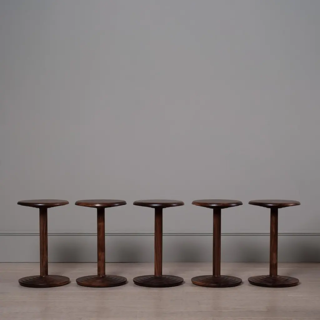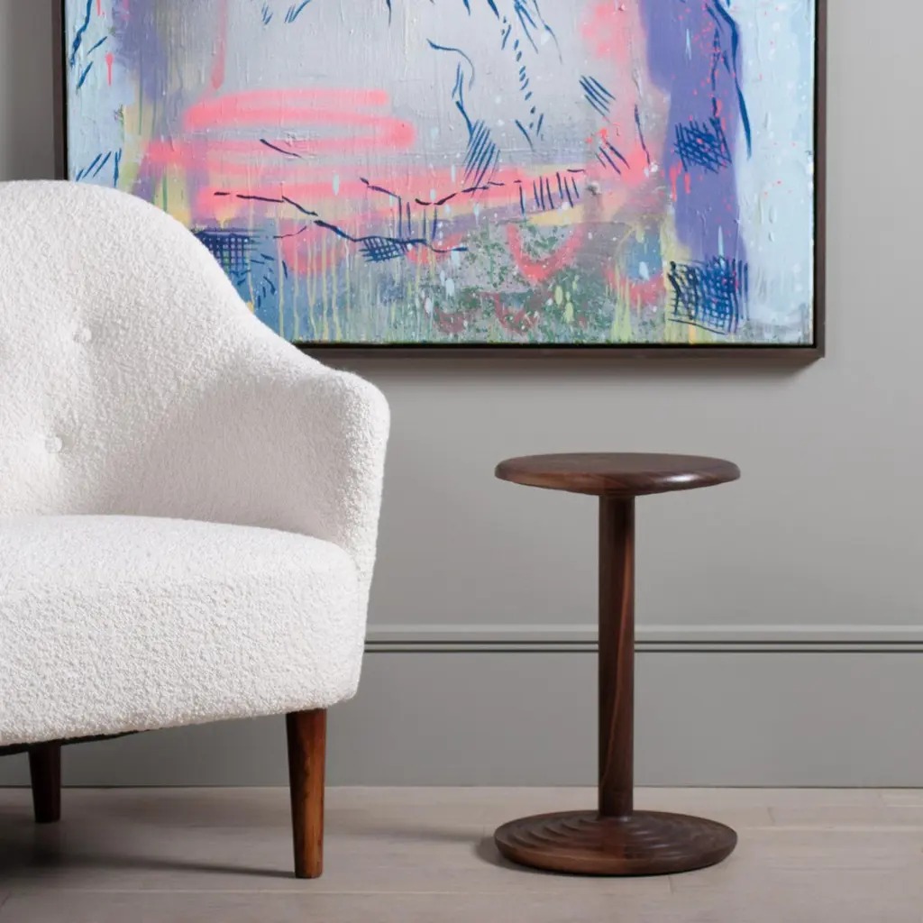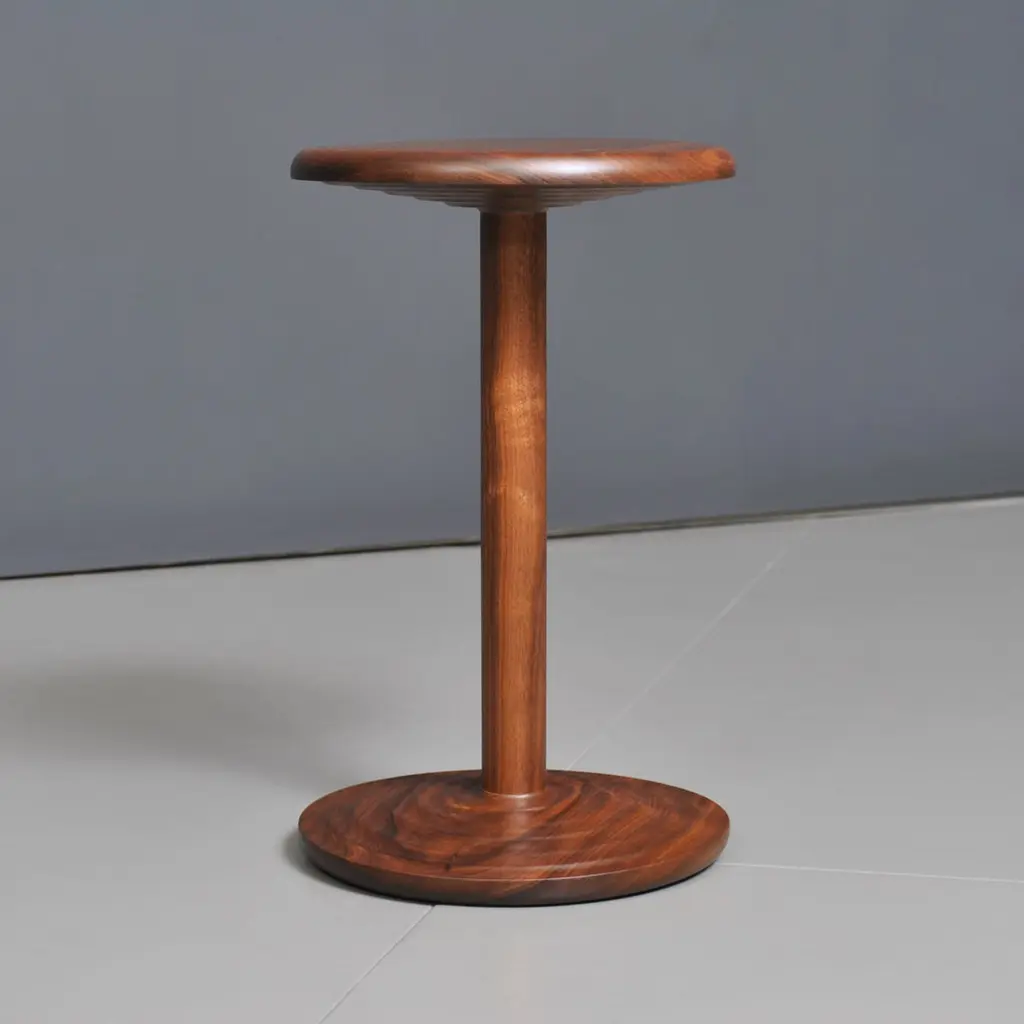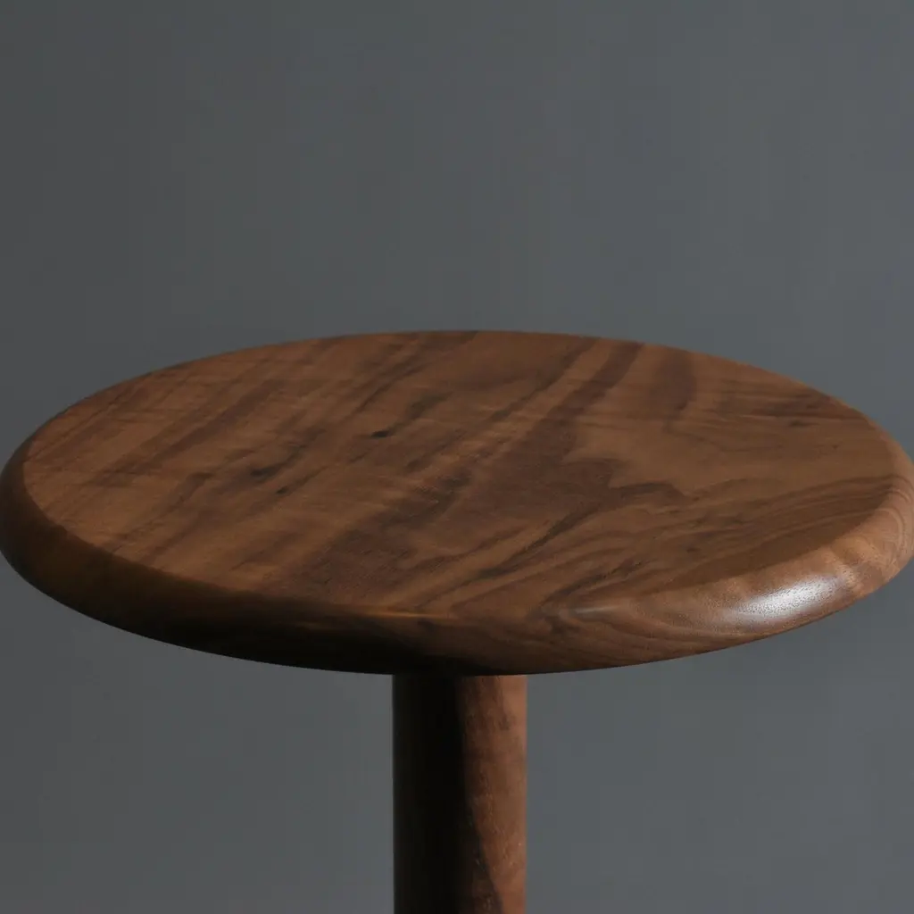 Beautifully turned and completely handcrafted walnut side table in a modernist design. This is a bespoke piece of the finest quality, handmade by our master craftsman in the UK using American black walnut. Rippled turning technique to both base and upper surface underside. Hand finished with very durable natural oils.We design bold and distinctive pieces of furniture – our main objective is combining the design alongside the natural beauty and properties of the raw materials.These timbers and materials are very carefully chosen for each specific design - maintaining our focus on the benefits, visual impact and strengths of what we use. By utilising these wonderful and naturally occurring features with our contemporary designs we aim to continue creating some very distinct, tactile and idiosyncratic pieces.These are all completely handmade, in very small numbers, by our skilled craftspeople in England.