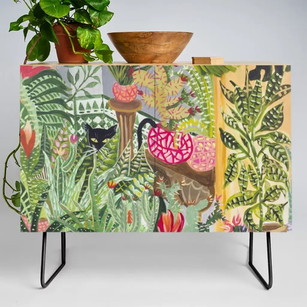 Handmade Colorful Painted Folk Art Metal Dog Side Table
