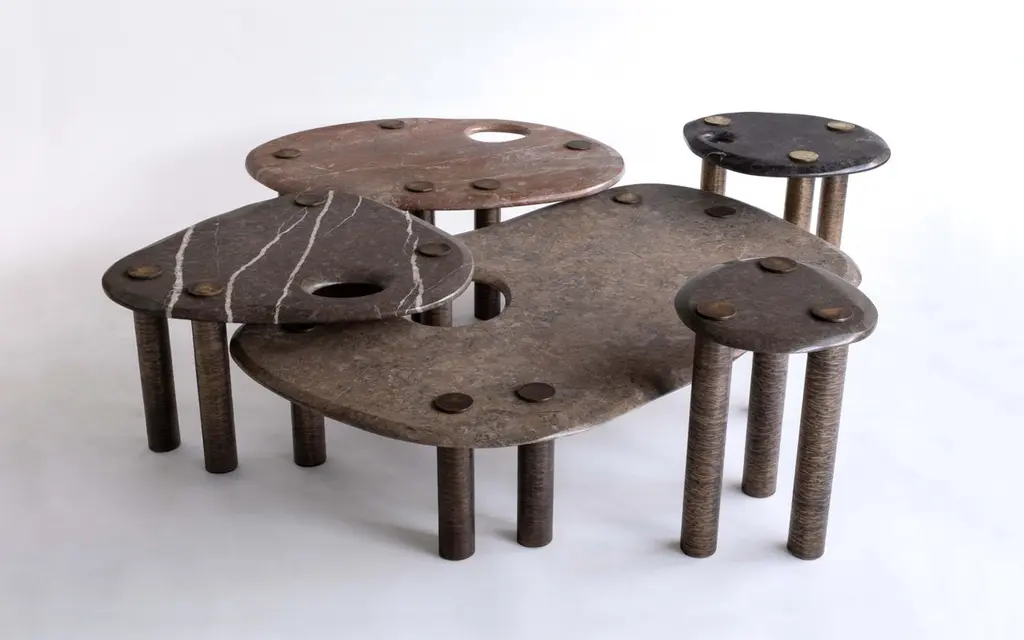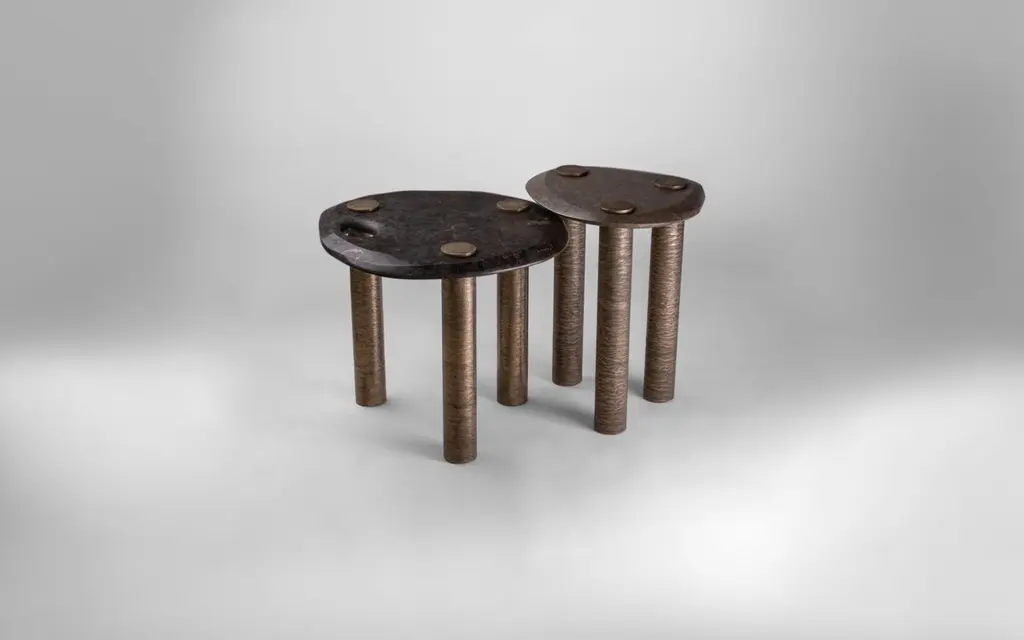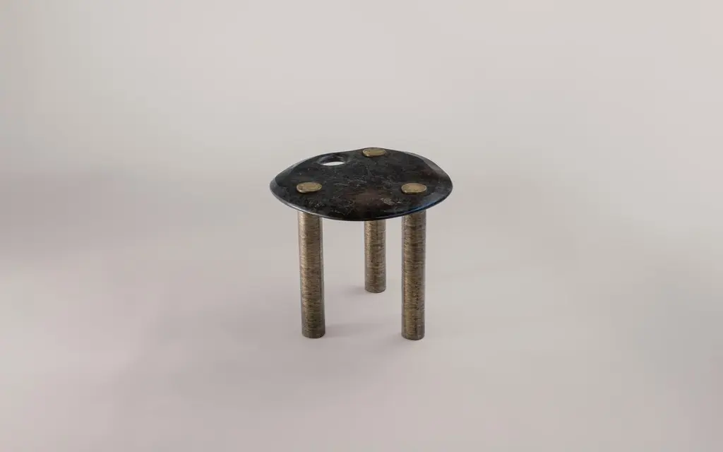 Handmade Hagstone Side Table, Textured Brass&rare British Marble