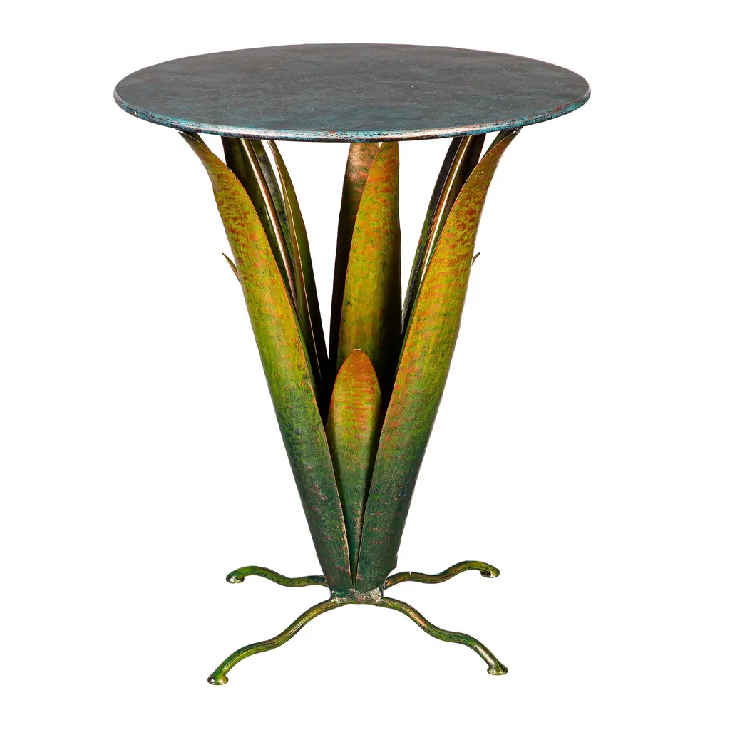 Add some beauty and personality to your space with this Handmade Metal Bromeliad Flower Side Table. It's a one-of-a-kind design that you are sure to enjoy year after year. Sporting a hand-painted patina finish, this beautiful botanical table is handcrafted from reclaimed oil drums by artisans in Bali. With a unique look, detailed design and flat top, it's ready to grace your space all day and night long. Set it in your living room or entryway as a great conversation starter and functional side table. It's also outdoor-safe and works on your porch, deck or patio. It easily holds drinks, reading material, snacks or even a plant. Also make a great gift for garden & nature lovers!
