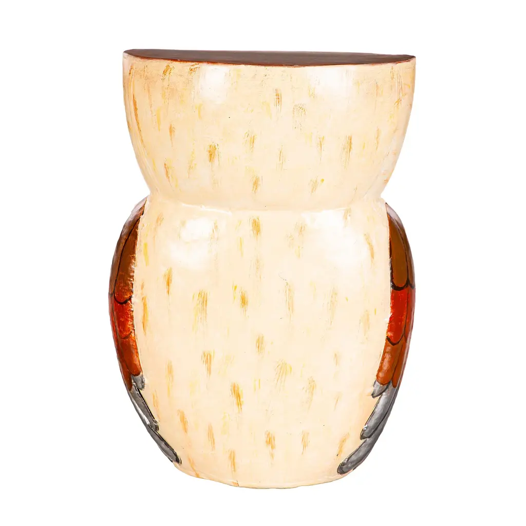 Make a wise and welcoming statement with our colorful Owl Metal Side Table. Made by hand from reclaimed metal by Indonesian artisans and hand painted in a rainbow of vibrant colors, this wise owl is poised to support your drink, a good book, or perhaps a potted plant. Designed for use outdoors, you just might find yourself enjoying the company of this witty owl indoors as well. The swirling, multicolored design adds more than a dash of whimsy to any space this table occupies. Perfect for the deck, patio, sunroom and more. Plus, it's a great conversation starter in any spot. Also makes a great gift!