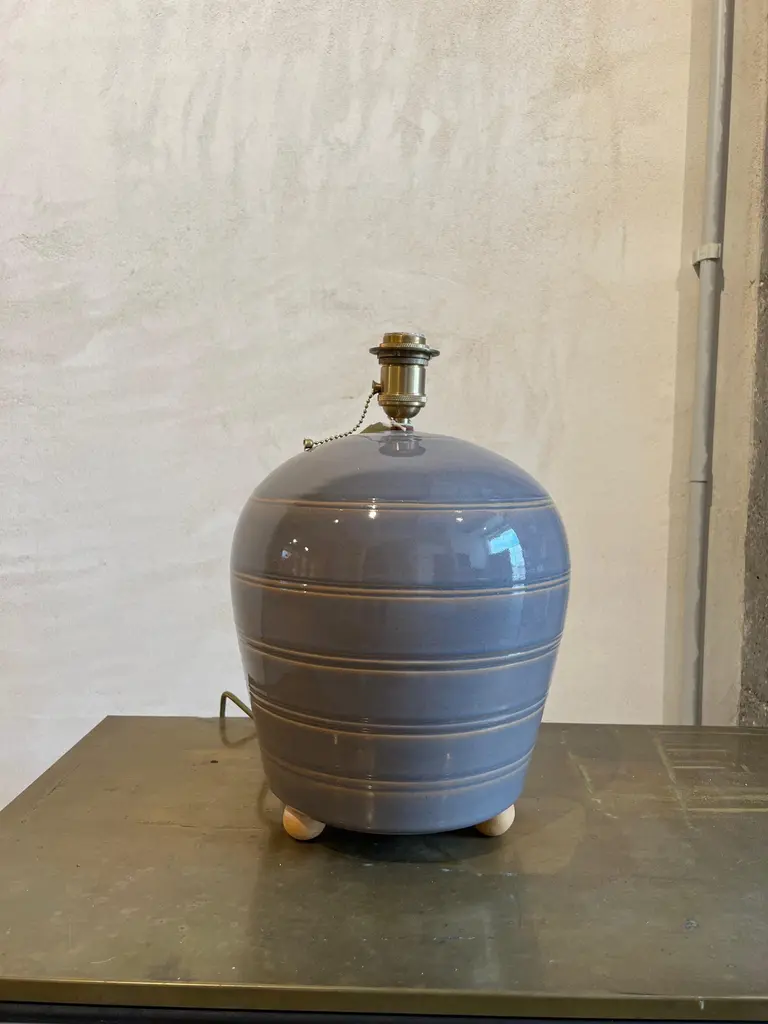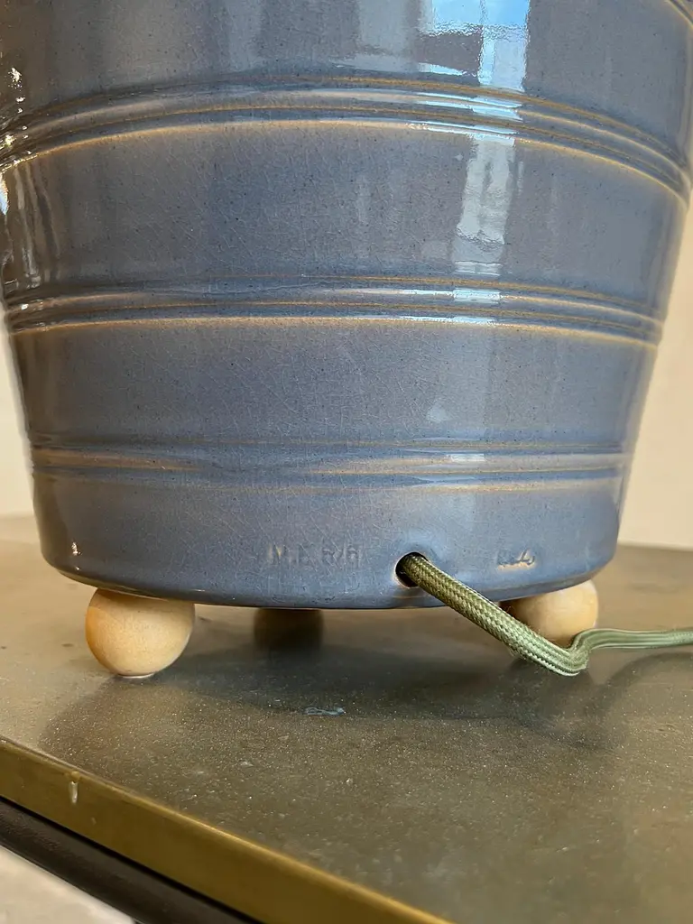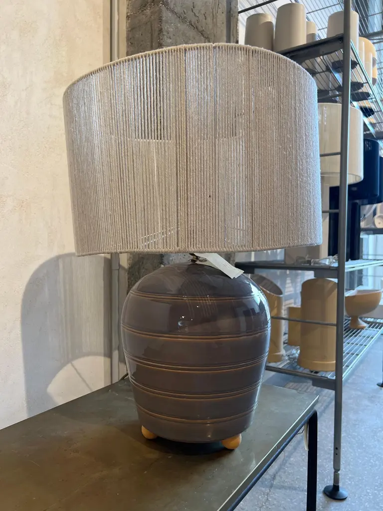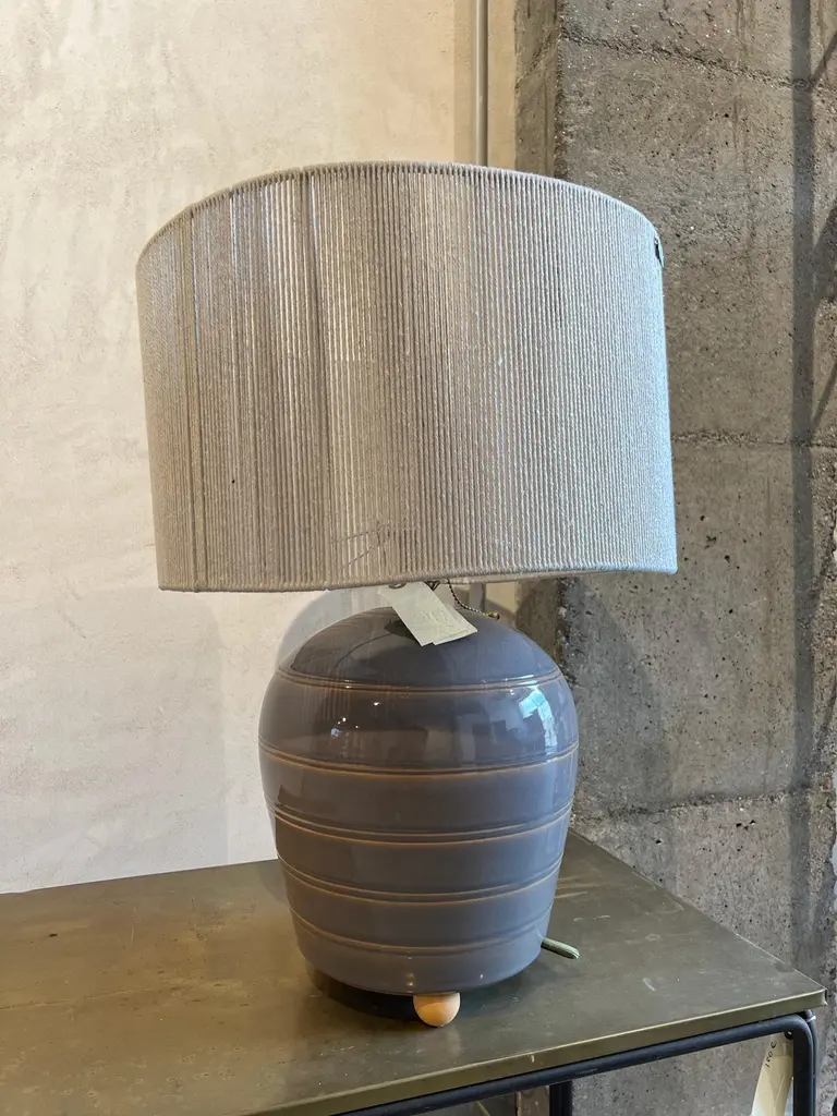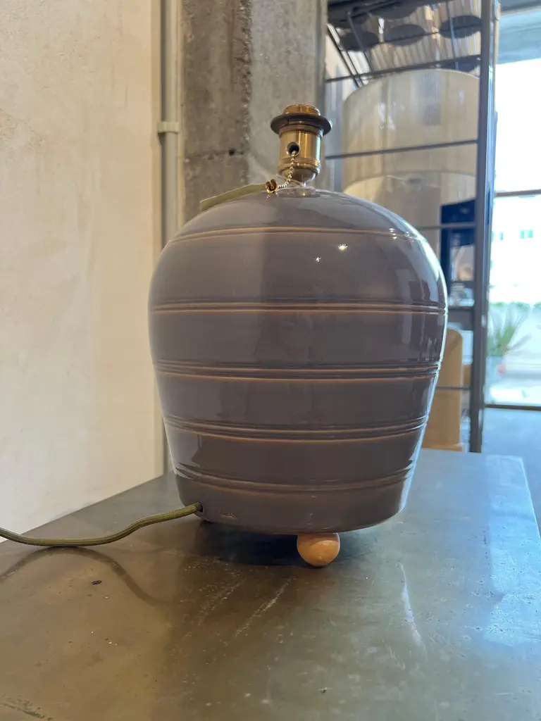 Sculptural ceramic table side lamp handmade in the Galician town of Buño, unique in the world for its pottery treatment, hundreds of years old.The lamp is numbered and signed with the seal of the craftsman and the artist, in addition to accompanying an official certificate from the "Olería de Buño" and its limited edition seal of 6.The material with which the lamp is made is clay and stoneware, vitrified for greater durability over time and projection of the light from the bulb. Lampshade and bulb are not included, we sell lampshades separately.The electrical system is adapted for the American continent as well as for the European one. The design of this lamp is a design in which the very traces of the hands that made it are present. The color is a gray with stripes made of mud in low relief, very subtle but very beautiful. It has ball feet for better support to the surface, preventing it from slipping or breaking.We currently have four of these lamps in stock.The size of the lamp (without lampshade) is 40 cm high x 28 cm in diameter. And with the lampshade that appears in the photos 90 cm high x 40 cm in diameter.
