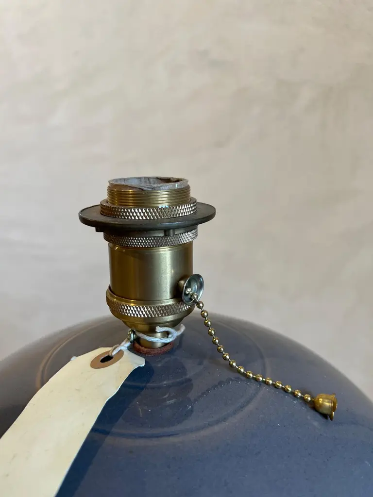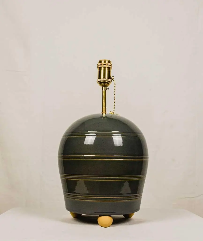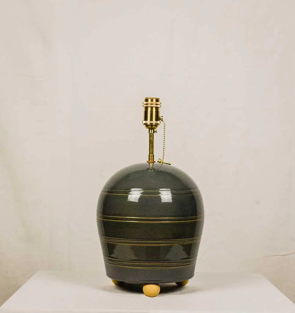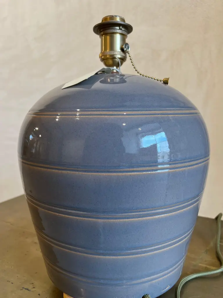 Sculptural ceramic table side lamp handmade in the Galician town of Buño, unique in the world for its pottery treatment, hundreds of years old.The lamp is numbered and signed with the seal of the craftsman and the artist, in addition to accompanying an official certificate from the "Olería de Buño" and its limited edition seal of 6.The material with which the lamp is made is clay and stoneware, vitrified for greater durability over time and projection of the light from the bulb. Lampshade and bulb are not included, we sell lampshades separately.The electrical system is adapted for the American continent as well as for the European one. The design of this lamp is a design in which the very traces of the hands that made it are present. The color is a gray with stripes made of mud in low relief, very subtle but very beautiful. It has ball feet for better support to the surface, preventing it from slipping or breaking.We currently have four of these lamps in stock.The size of the lamp (without lampshade) is 40 cm high x 28 cm in diameter. And with the lampshade that appears in the photos 90 cm high x 40 cm in diameter.