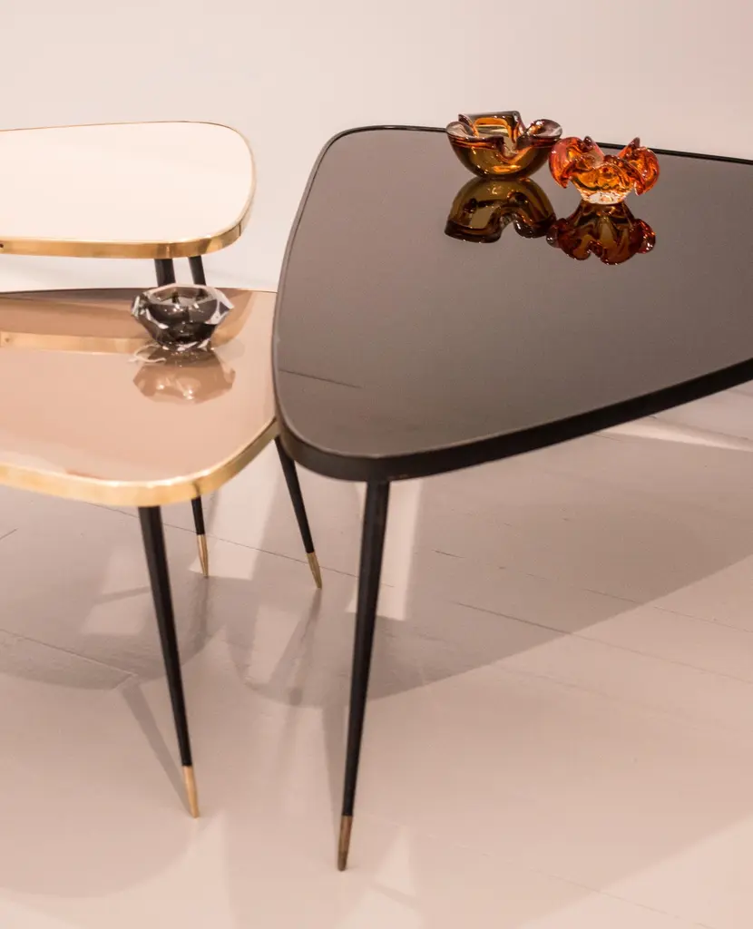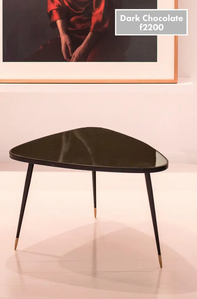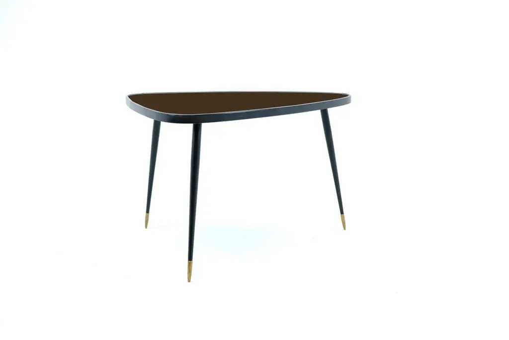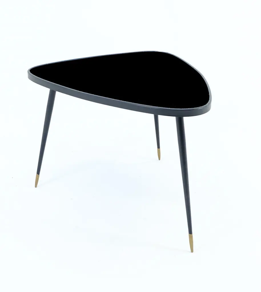 Twist Collection - side table with black iron outline - large top. height 16,5" or 18.1" // 42 or 46 cm.Large Top (16,5"): 47,2x38,1x16,5 inches 120x97x42 cmLarge Top (18,1"): 47,2x38,1x18,1 inches 120x97x46 cmThe Twist table collection is a line of elegant and modern furniture that is sure to catch the eye in any space. Each table in the collection comes in six different sizes, meaning there is an option for every need and space. In addition, there are several colors available to choose from, allowing for customization to perfectly fit home or office decor.The three-legged structure with a brass base is one of the standout features of this collection. This base gives each table a sleek and sophisticated look, while also providing exceptional stability and durability. Additionally, the table legs have a twisted design that creates an impressive and attractive visual effect.The Twist table collection is not only a beautiful and functional addition to any space, but each table is also handcrafted in Spain. This means that every piece is made with meticulous attention to detail, ensuring that each table is of the highest quality. The combination of expert craftsmanship and premium materials used in the manufacturing process ensures that each table is not only beautiful, but also durable and long-lasting. These tables are ideal for both daily use and special occasions and fit in with any decor style. Overall, the Twist collection is an excellent choice for those seeking modern and elegant furniture that is also functional and long-lasting.It can work as a cocktail table or nightstand. In combination with other heights and top Dimension it can be a nesting table as it appears on the images.