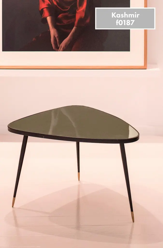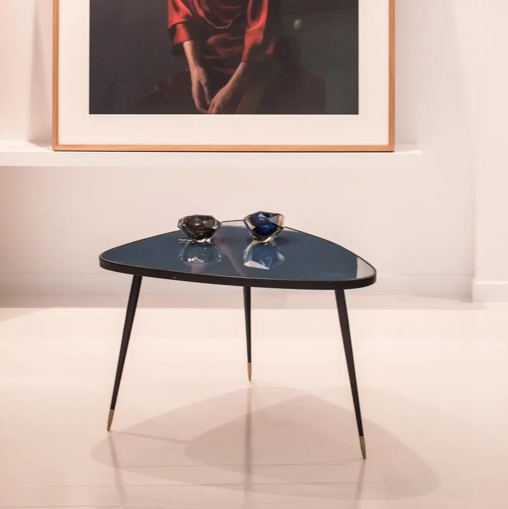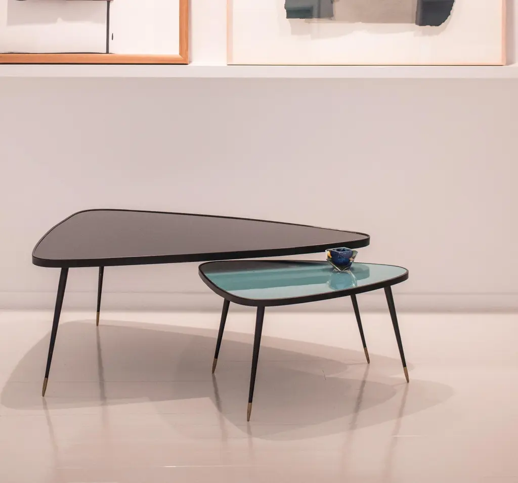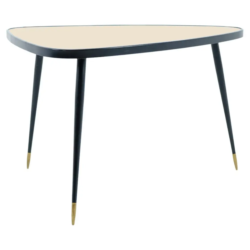 Twist Collection - side table with black iron outline - large top. height 16,5" or 18.1" // 42 or 46 cm.Large Top (16,5"): 47,2x38,1x16,5 inches 120x97x42 cmLarge Top (18,1"): 47,2x38,1x18,1 inches 120x97x46 cmThe Twist table collection is a line of elegant and modern furniture that is sure to catch the eye in any space. Each table in the collection comes in six different sizes, meaning there is an option for every need and space. In addition, there are several colors available to choose from, allowing for customization to perfectly fit home or office decor.The three-legged structure with a brass base is one of the standout features of this collection. This base gives each table a sleek and sophisticated look, while also providing exceptional stability and durability. Additionally, the table legs have a twisted design that creates an impressive and attractive visual effect.The Twist table collection is not only a beautiful and functional addition to any space, but each table is also handcrafted in Spain. This means that every piece is made with meticulous attention to detail, ensuring that each table is of the highest quality. The combination of expert craftsmanship and premium materials used in the manufacturing process ensures that each table is not only beautiful, but also durable and long-lasting. These tables are ideal for both daily use and special occasions and fit in with any decor style. Overall, the Twist collection is an excellent choice for those seeking modern and elegant furniture that is also functional and long-lasting.It can work as a cocktail table or nightstand. In combination with other heights and top Dimension it can be a nesting table as it appears on the images.
