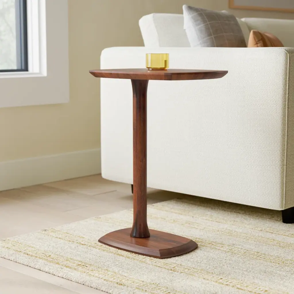 This minimalist end table is a stylish and practical add to your living room or bedroom. Made from solid mango wood, its C-shaped silhouette and chamfered edges create a Scandinavian look that's both stylish and functional. The space-saving design, paired with a sturdy pedestal leg, allows you to effortlessly slide it over your sofa arm or bed for easy access to snacks, beverages, or your favorite book. Bonus: The wood is kiln-dried for stability and durability.