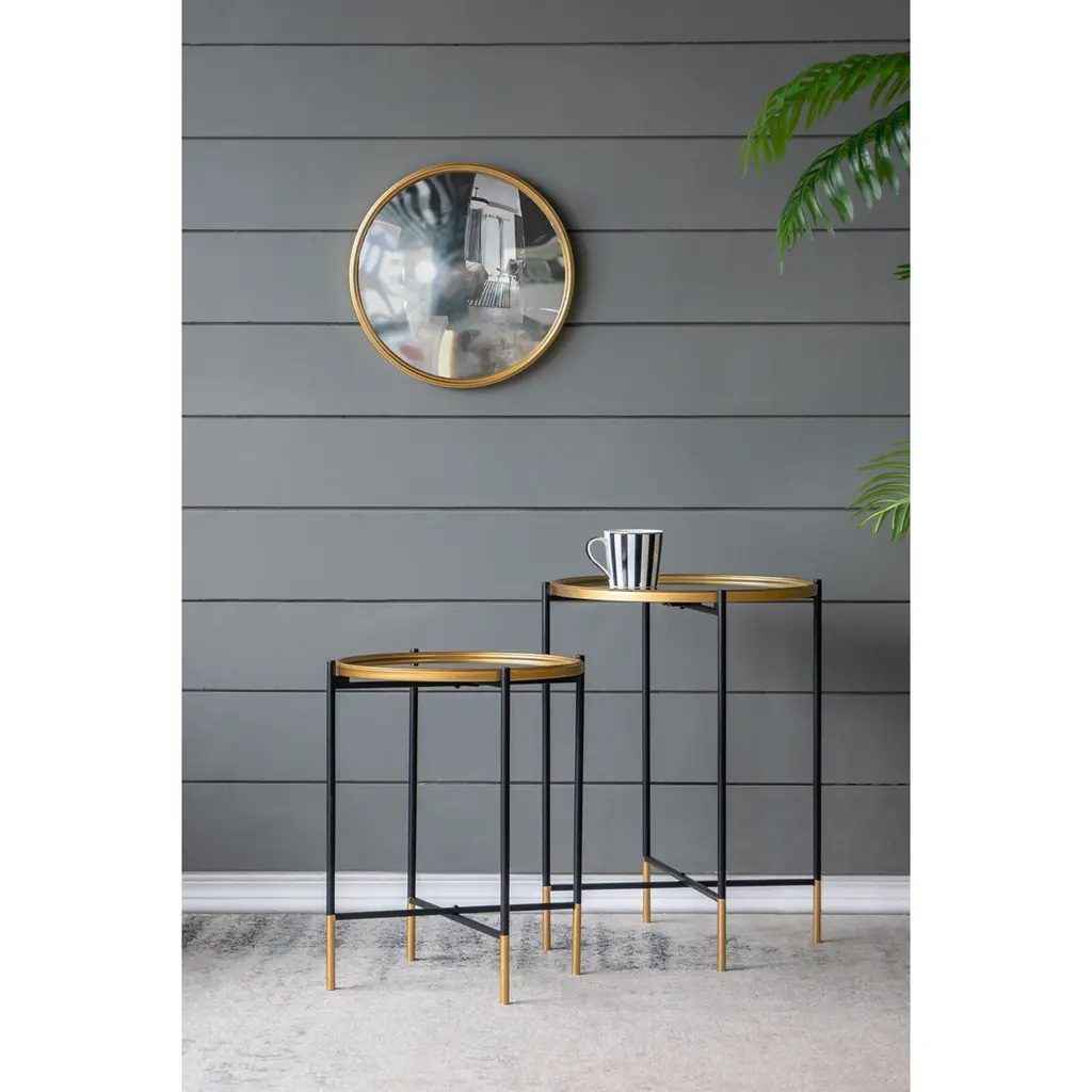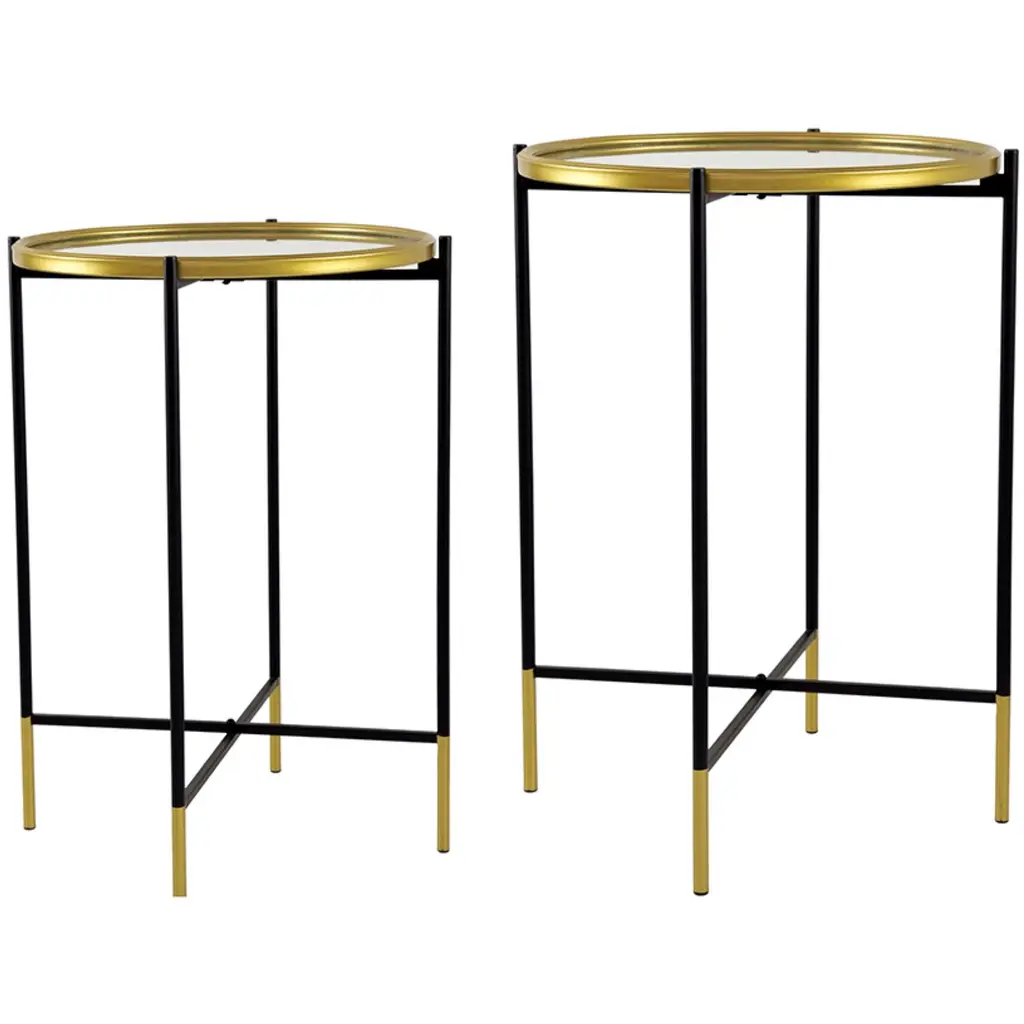 Elevate your living space with the warm elegance, graceful flair, and deco-modern design of the Hannes set of two side tables. Brimming with chic style, these tables feature a gold and black finished metal frame and offer a luxurious yet casual look, pairing perfectly with the glass tabletop. With a simple, modern design, these tables bring a contemporary flair to any room of your home.