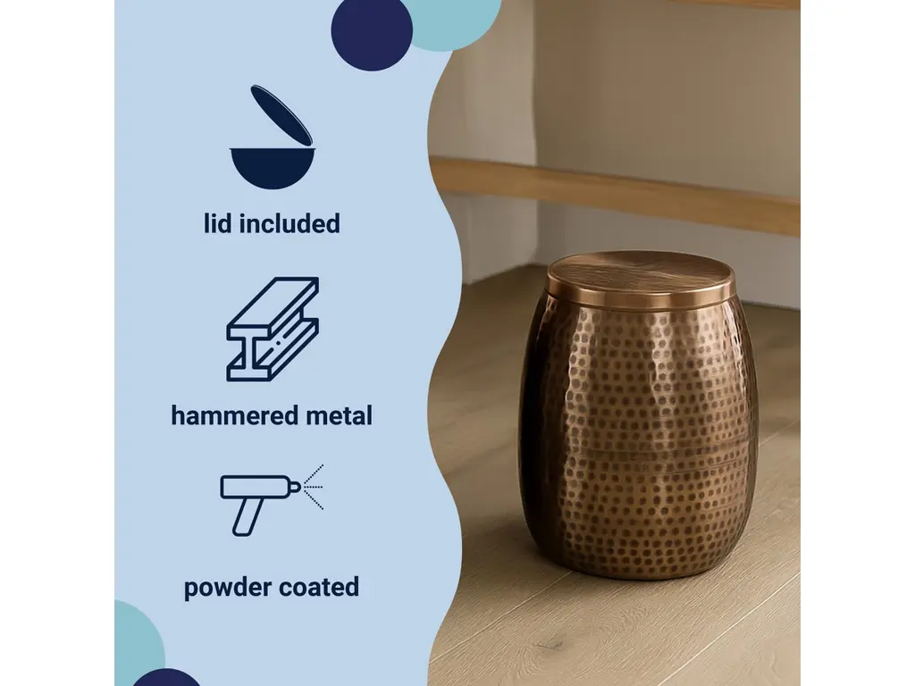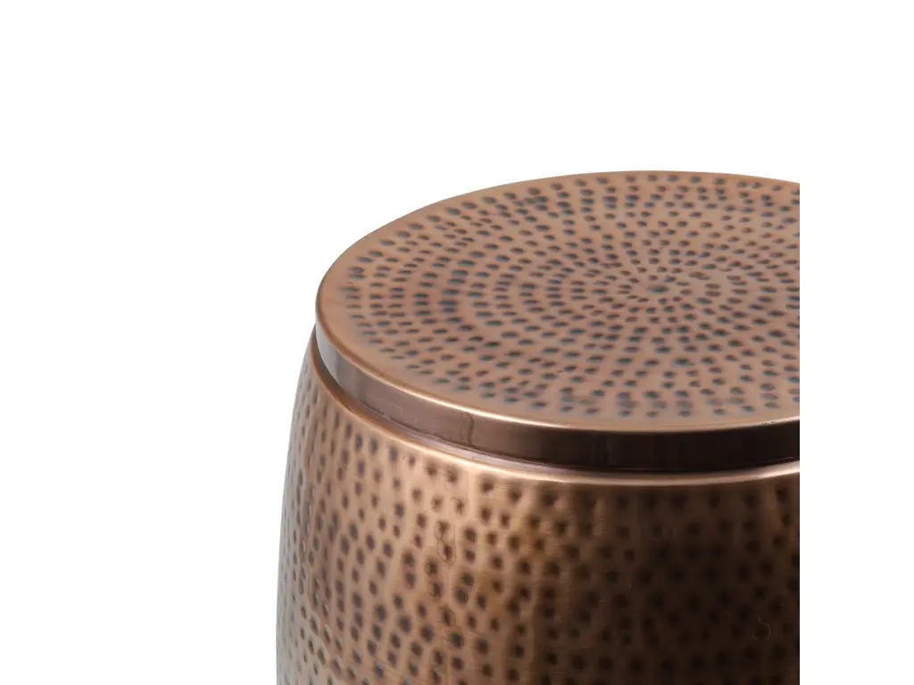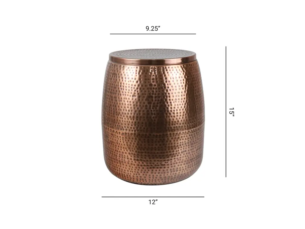This modern drum table has a hammered texture that gives it a rustic vibe. Made of metal, it's lightweight, durable and has a removable top for storage. Use this chic little stool for drinks beside a chair, or line up two or three in front of a sofa.