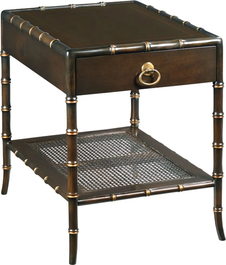 Impressive caning and a bamboo-style framework brushed in gold speak to this nightstand's timeless Chippendale influence. A lower shelf and a drawer offer plenty of bedside storage.