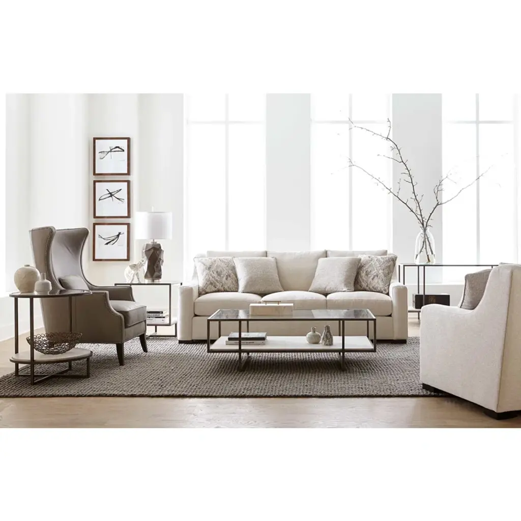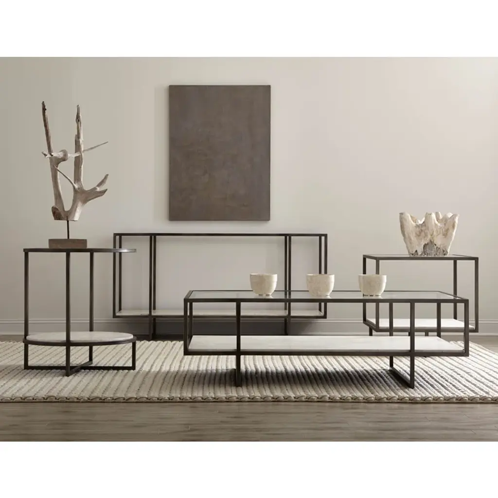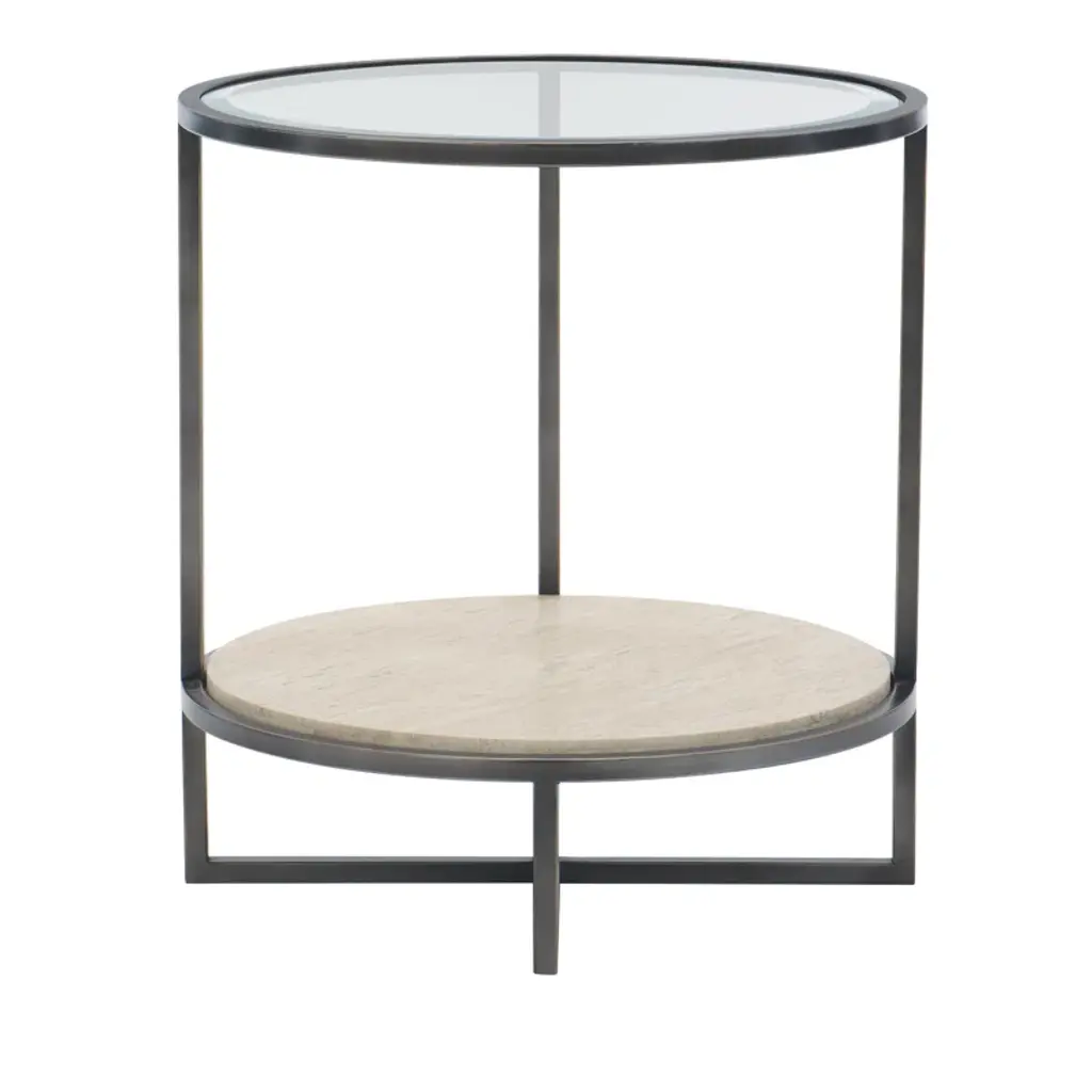 Casual and contemporary with a mix of materials this table offers minimalist styling and shows off the texture in the oil-rubbed bronze frame and white travertine shelf.