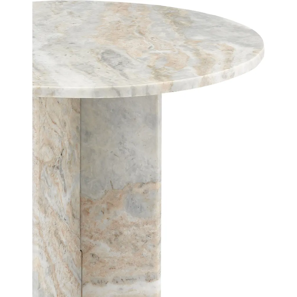 Made entirely of natural marble, the Harmon Accent Table is a timeless design. The gray, white, and blush veining in the marble will introduce instant texture into a space but the clean lines of the stone occasional table make it a pared-down choice. Because marble is a natural material, the patterns on each of these marble accent tables will vary.
