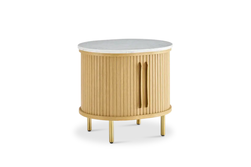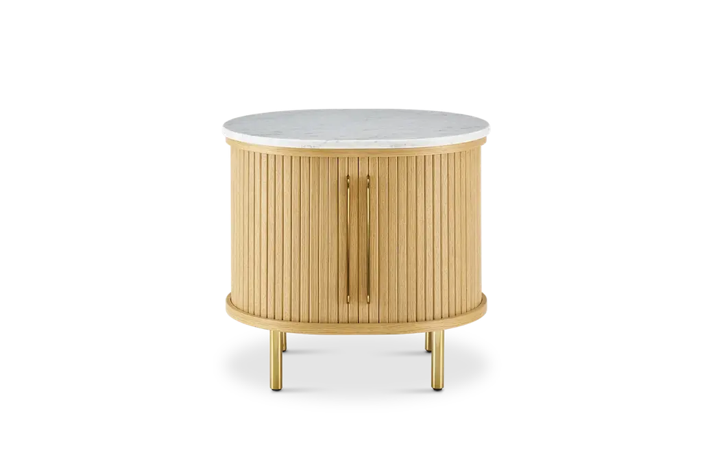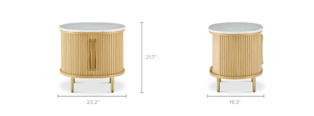 Where form meets obsession. Harper combines a sculptural tambour base with an Italian Carrara marble top that has unique veining, just like the life you're building around it.