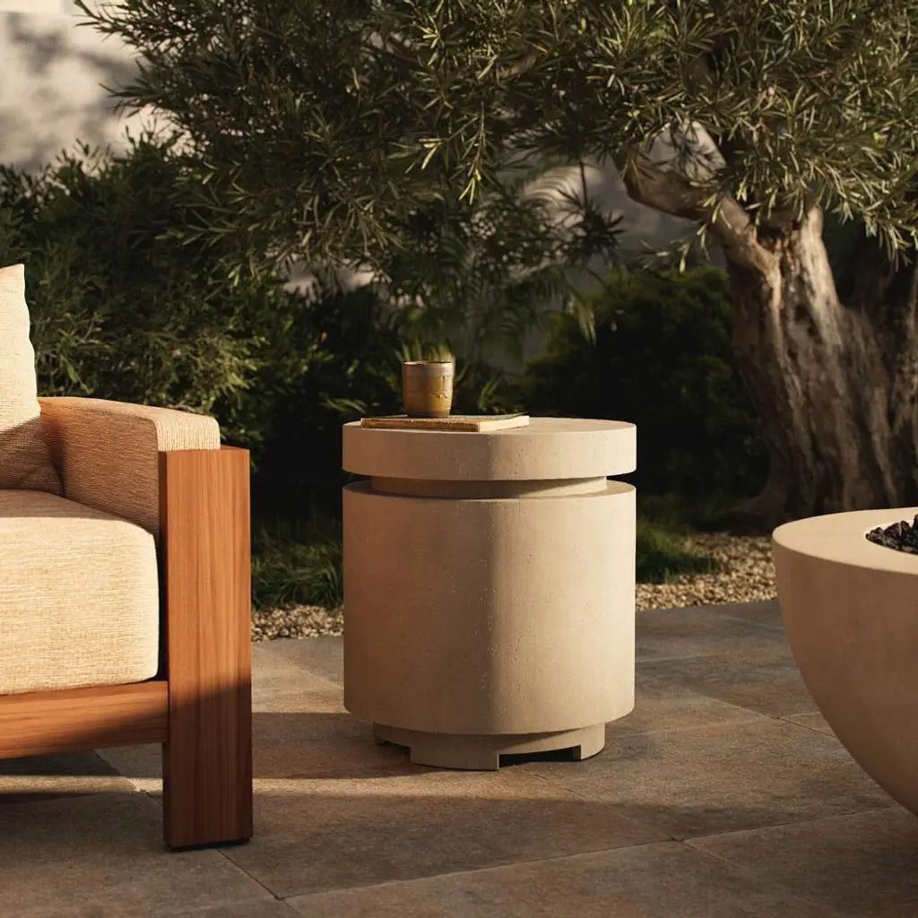 Harrah Industrial Natural Concrete Round Propane Enclosure Side Table