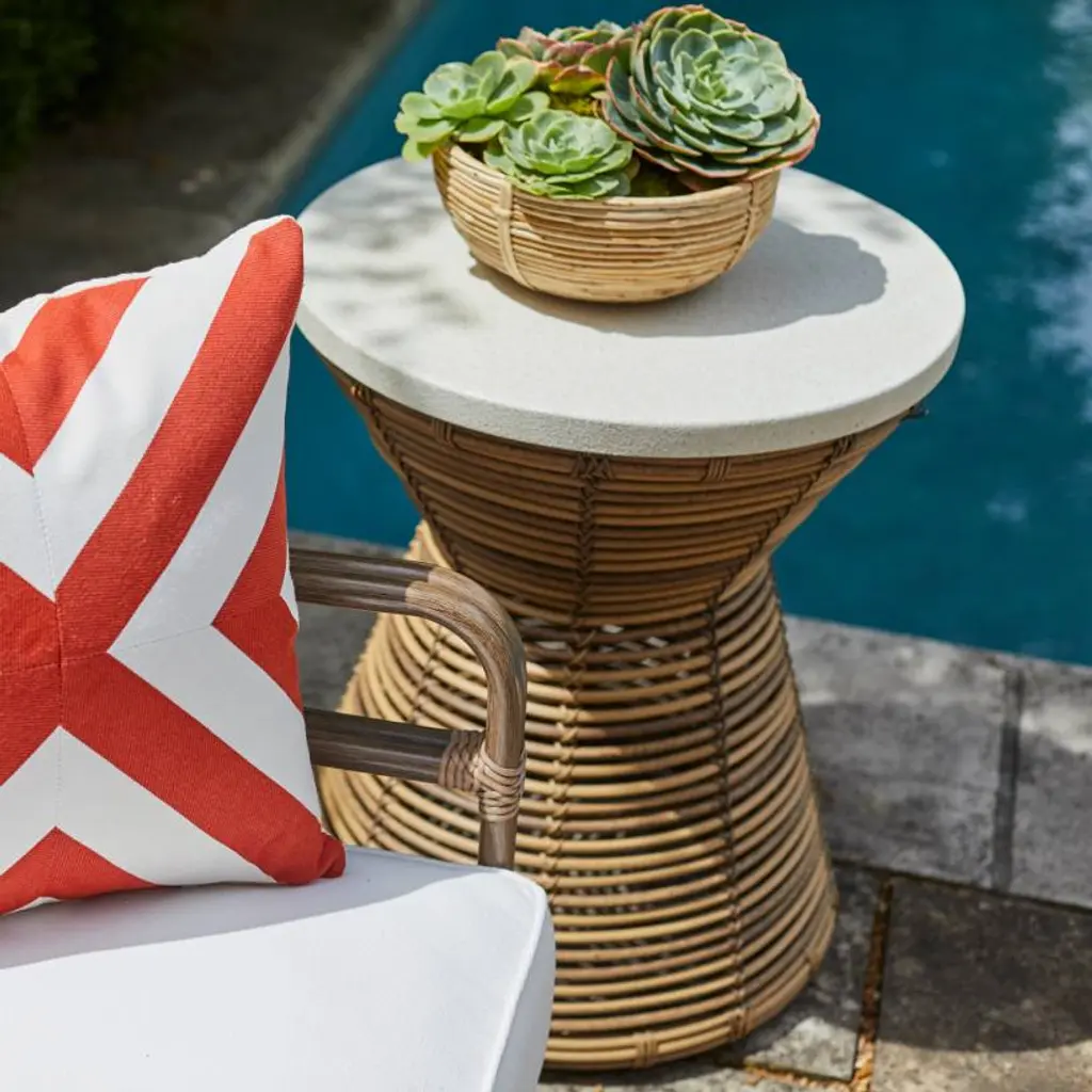 Inspired by the relaxed nature of outdoor living, the Harris End Table features a distinctive hourglass, woven wicker base with a circular Superstone top. Sturdy, woven N-dura™ resin wicker is durable and exceptionally weather resistant, providing year-round beauty and long-lasting enjoyment.