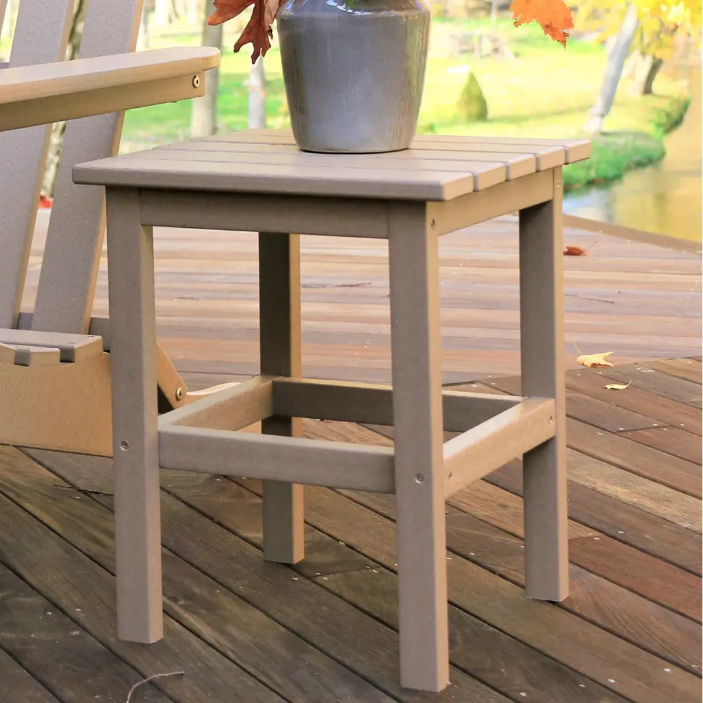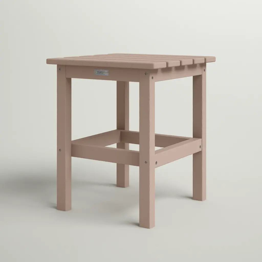 About This Product This side table is ideal for setting down your ice-cold drink as you enjoy the outdoors, whether you're sitting poolside or soaking up the sun on a porch, patio, or in the garden. It's made from recycled high-density polyethylene with a durable design that resists weather, water, UV rays, and rusting. Basically? You can keep it outside every season without worrying. Best of all, it comes together with only partial assembly. With a wide array of color options, it's easy to pair with spaces of all styles and palettes. Features Furniture made with Tangent Sustainable Lumber is designed to stay outdoors all year round. Designed to pair with any Tangent outdoor furniture pieces. No maintenance is required. Tangent Sustainable Lumber will not crack, peel, warp, or splinter. It never needs staining, waterproofing, or painting. Tangent furniture is made with recycled plastic and marine-grade stainless steel hardware. Simply clean with soap and water. Proudly made in the USA. Ships ready to assemble with easy step-by-step instructions.