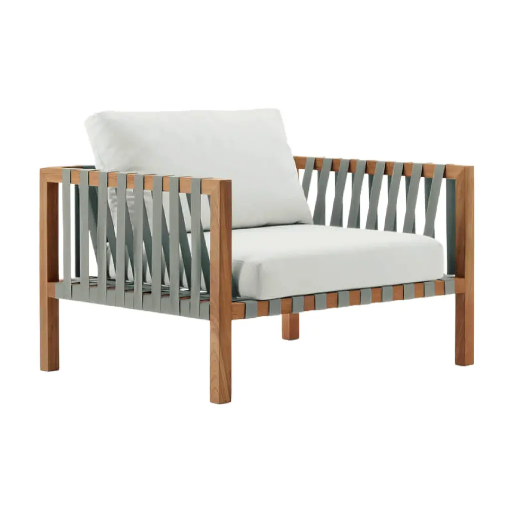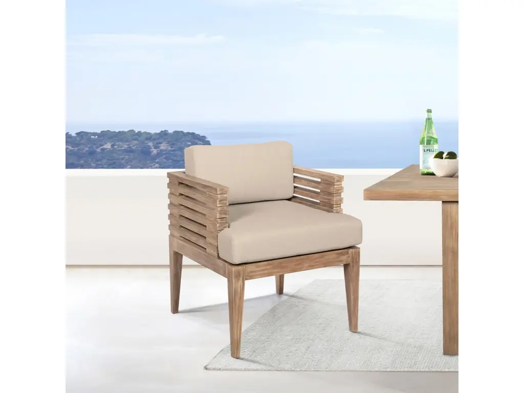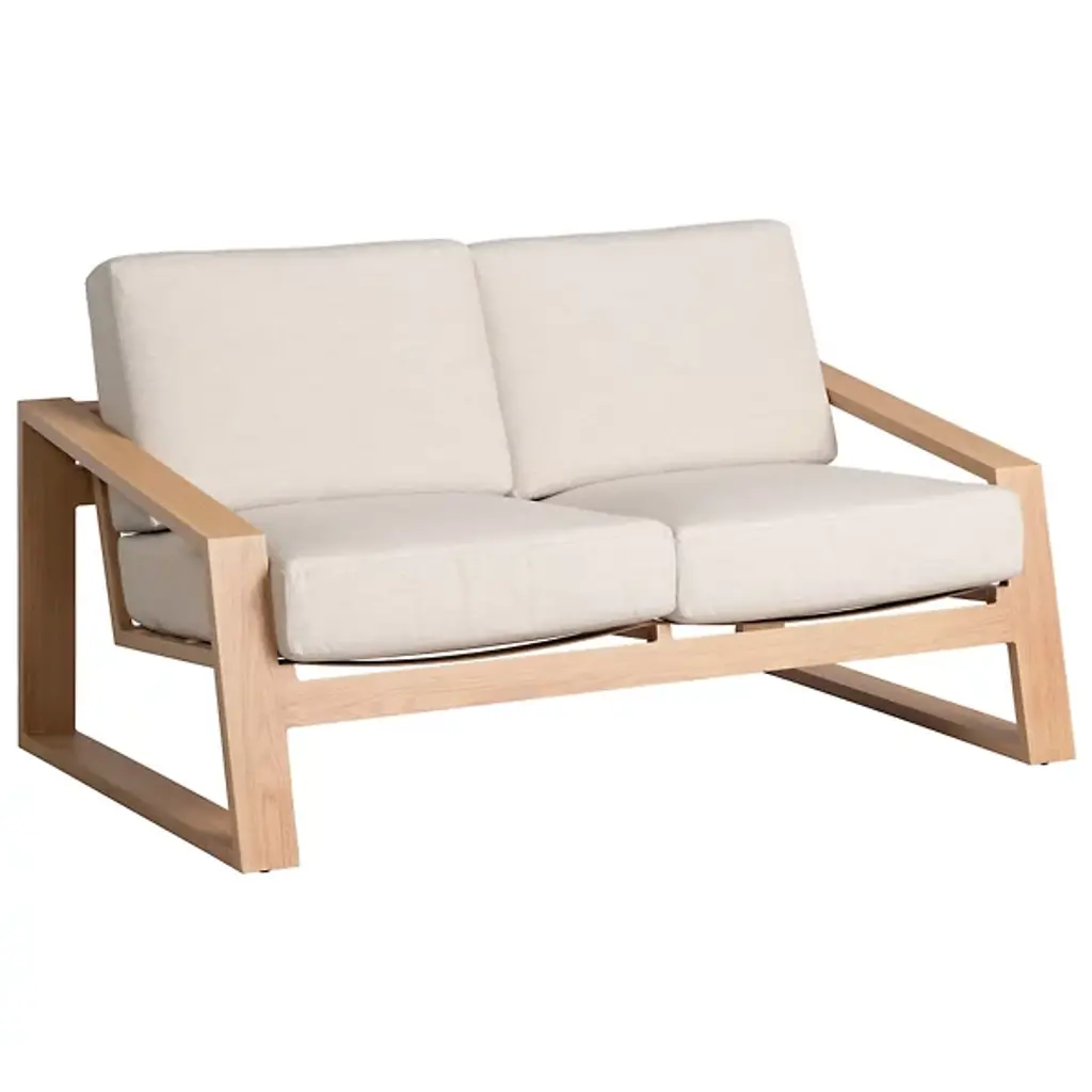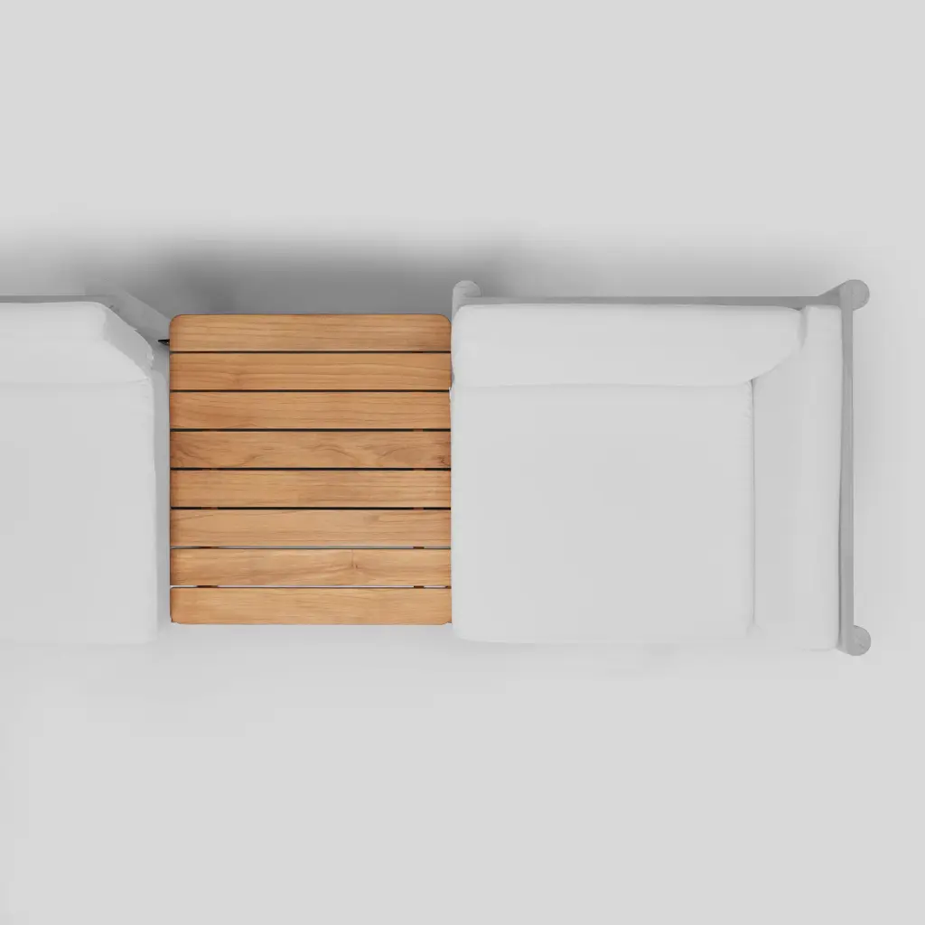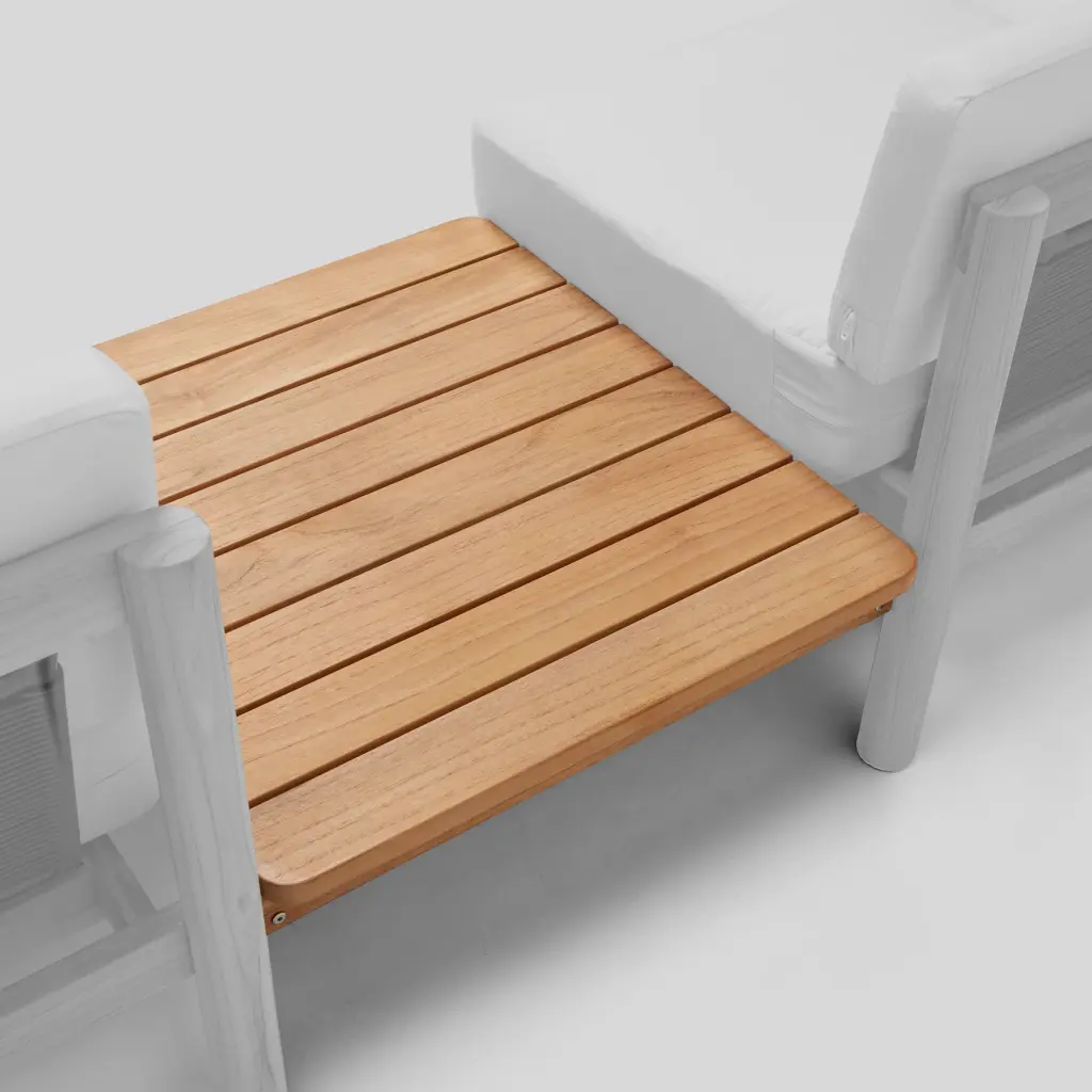 Add a surface for snacks and drinks to your outdoor lounge seating with this solid teak in-line table. Made as a sleek, modular add-on for the Haven Sectional, Sofa, or Loveseat.