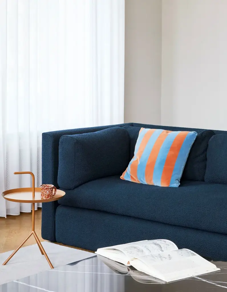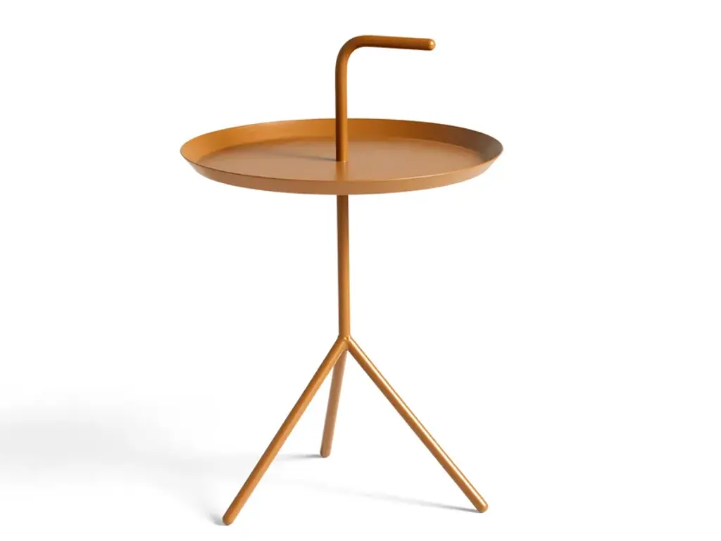 Thomas Bentzen’s portable side table is aptly named ‘Don’t Leave Me’. Abbreviated to DLM, it features a convenient handle that allows the metal table to be carried from room to room. Although it has a lightweight and portable structure, the three slanted legs provide great stability. Suitable for inside use in most home or office environments. Caramel color