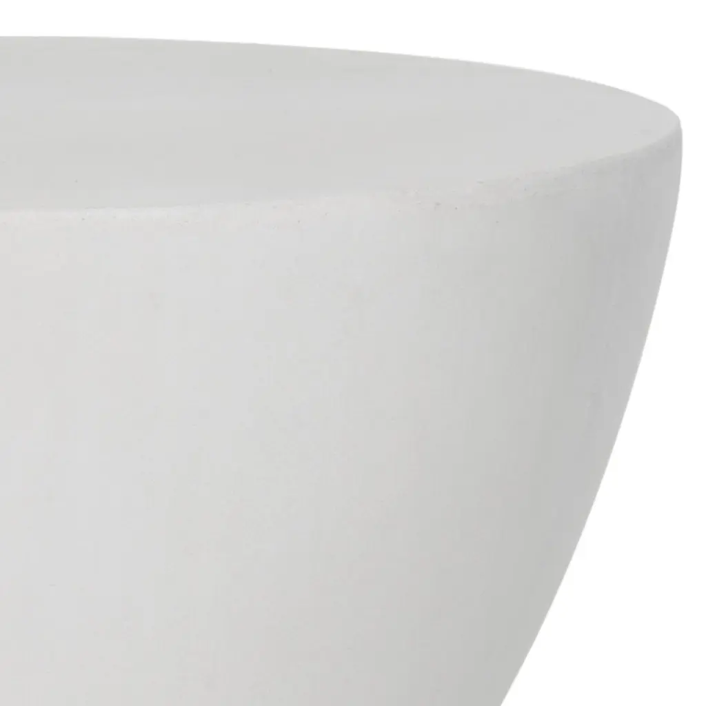A sculptural African djembe drum inspired the beautifully contoured silhouette of this concrete side table. An ivory finish adds refreshing, modern appeal.