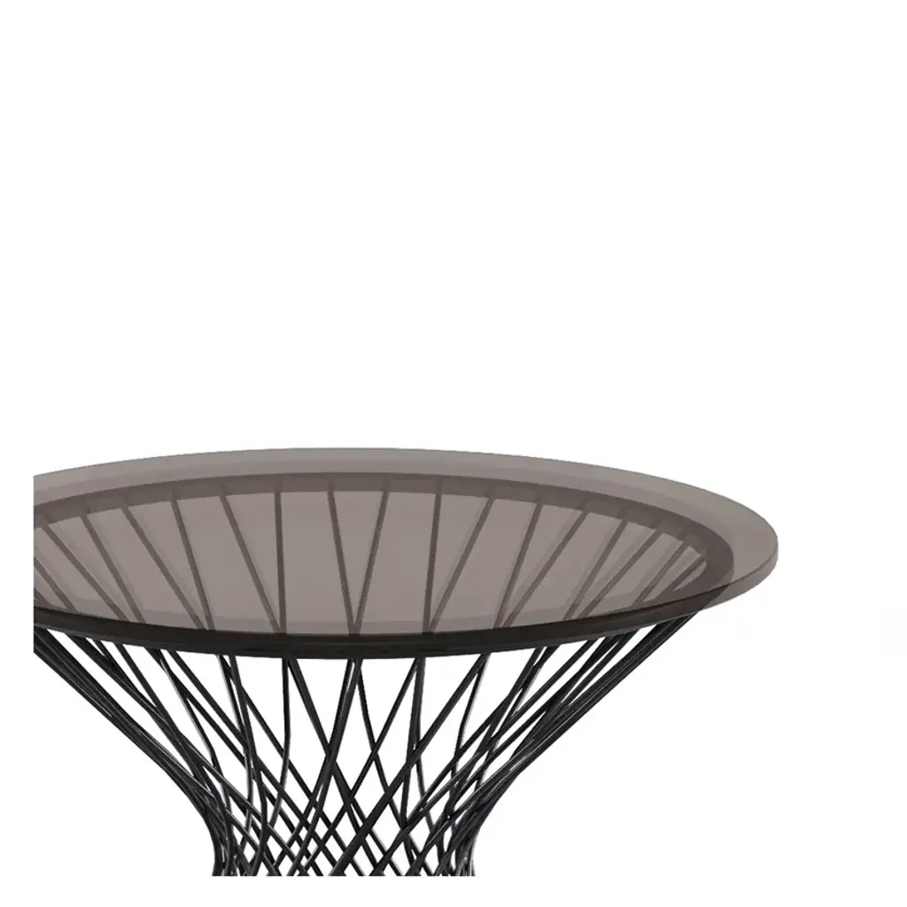 The idea underlying the Heaven project is that of lightness derived from forms emerging from hollow spaces bordered by interweaving lines. The thin, woven steel frame is the distinctive feature of a collection marked by well-proportioned lines and overall harmony. Steel chairs paired with transparent glass tops lighten the table surfaces, lending them an intangible quality. The harmonious and sophisticated shapes of the Heaven range of furniture give the impression of unconventional elegance.