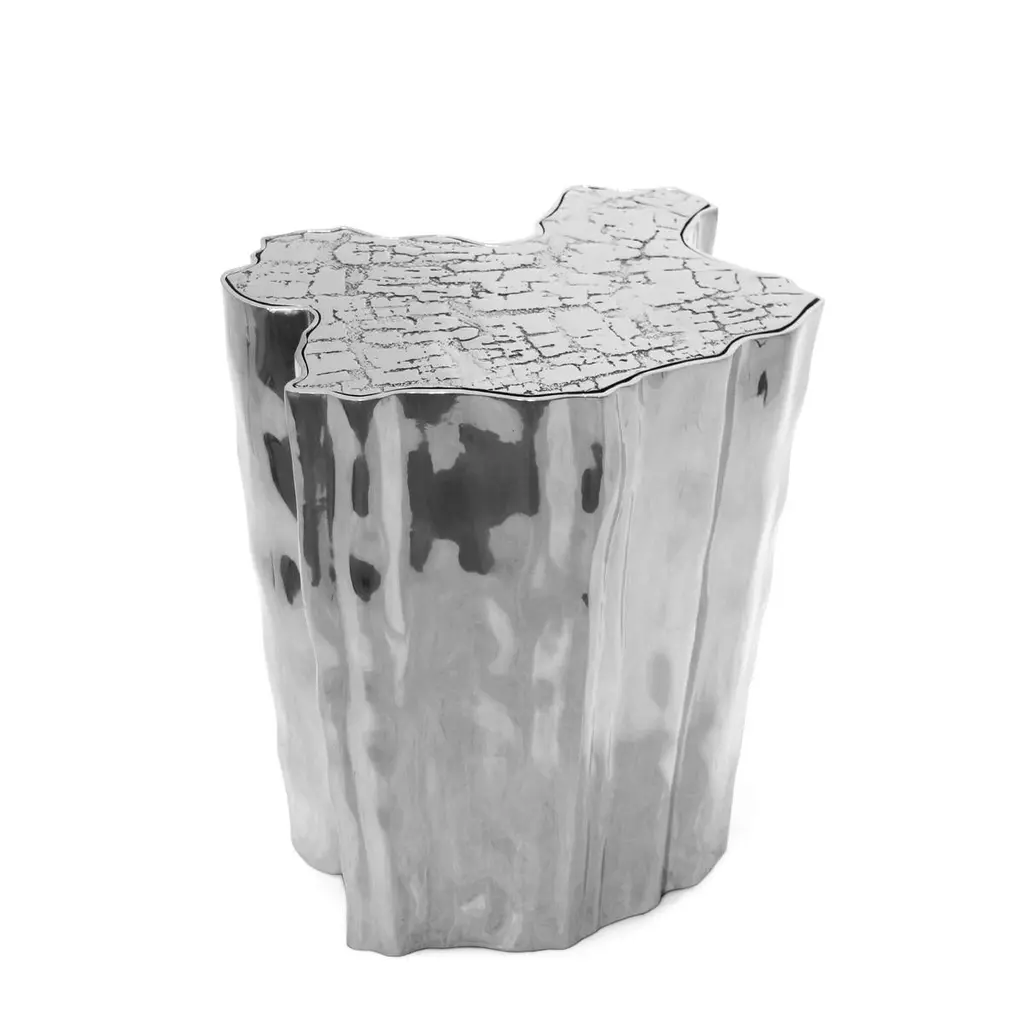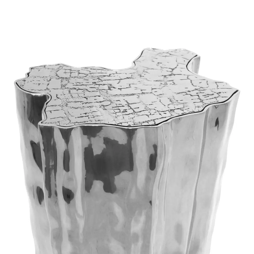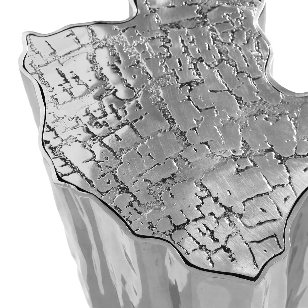 Side table heaven with all structure in polishedsolid aluminium and with veining top.