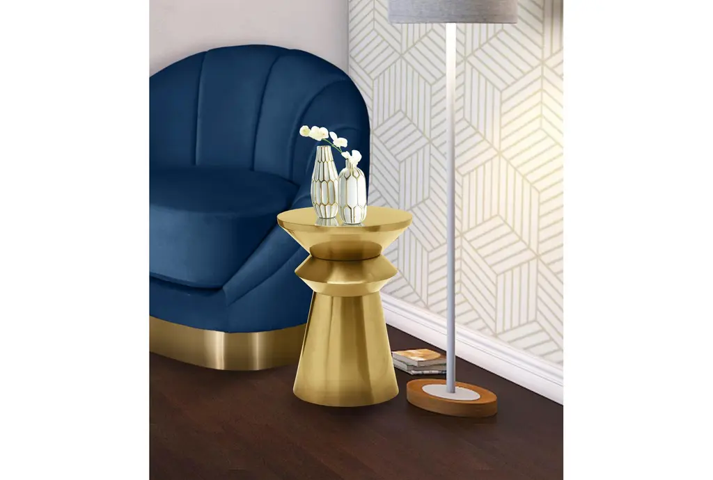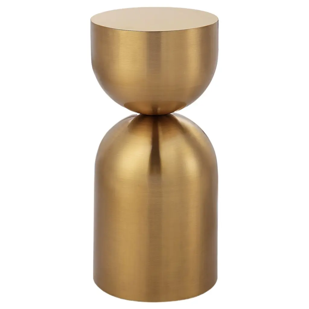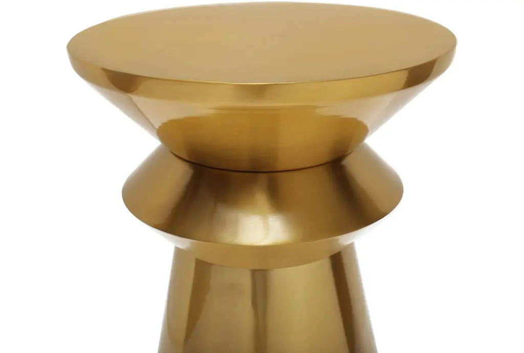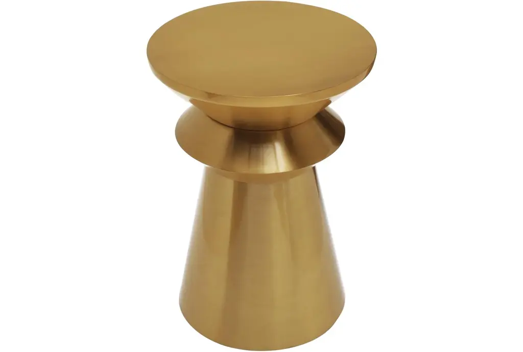 The Helio Modern Brushed Gold Metal 14" Round Stacked End Table is a stylish addition to any living room. Its modern design and gold finish make it a standout piece. The small size and round shape are perfect for cozy spaces.