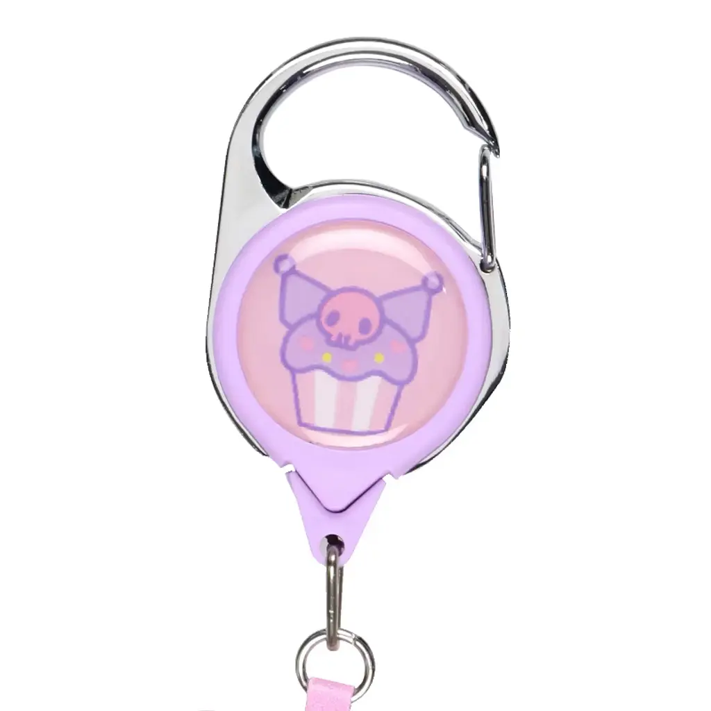 Add some personality to your everyday essentials with this adorable Kuromi retractable badge holder! Featuring a playful cupcake-themed reel casing, a sturdy lobster claw carabiner, and a clear ID window, this badge holder is both fun and functional. Whether you’re a nurse, teacher, office worker, or student, this accessory makes it easy to keep your ID badge, keys, or access card handy while showing off your love for Hello Kitty and Friends. Designed for convenience, the strong carabiner clip securely attaches to lanyards, bags, or belt loops, while the smooth retractable cord allows for quick and hassle-free access to your ID. No more searching through pockets or fumbling at security gates.