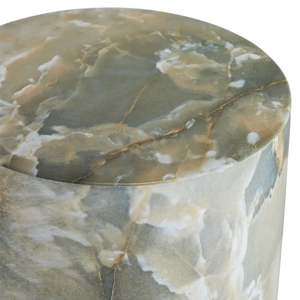 Herbie Global Bazaar Jade Faux Marble Round Drum Accent Table