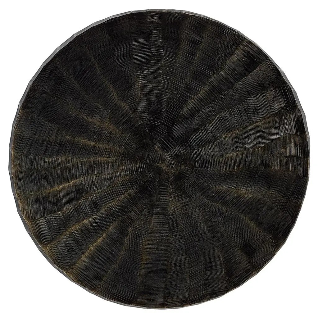 An imaginative, industrial interpretation of a drink table, this unique piece makes an ideal accent piece for any home from ultra-modern city loft to rustic mountain lodge. Deep ridges and a whimsical hourglass-inspired shape bring an artistic, sculptural appeal to the table, composed of cast aluminum brushed with an antique brass finish.