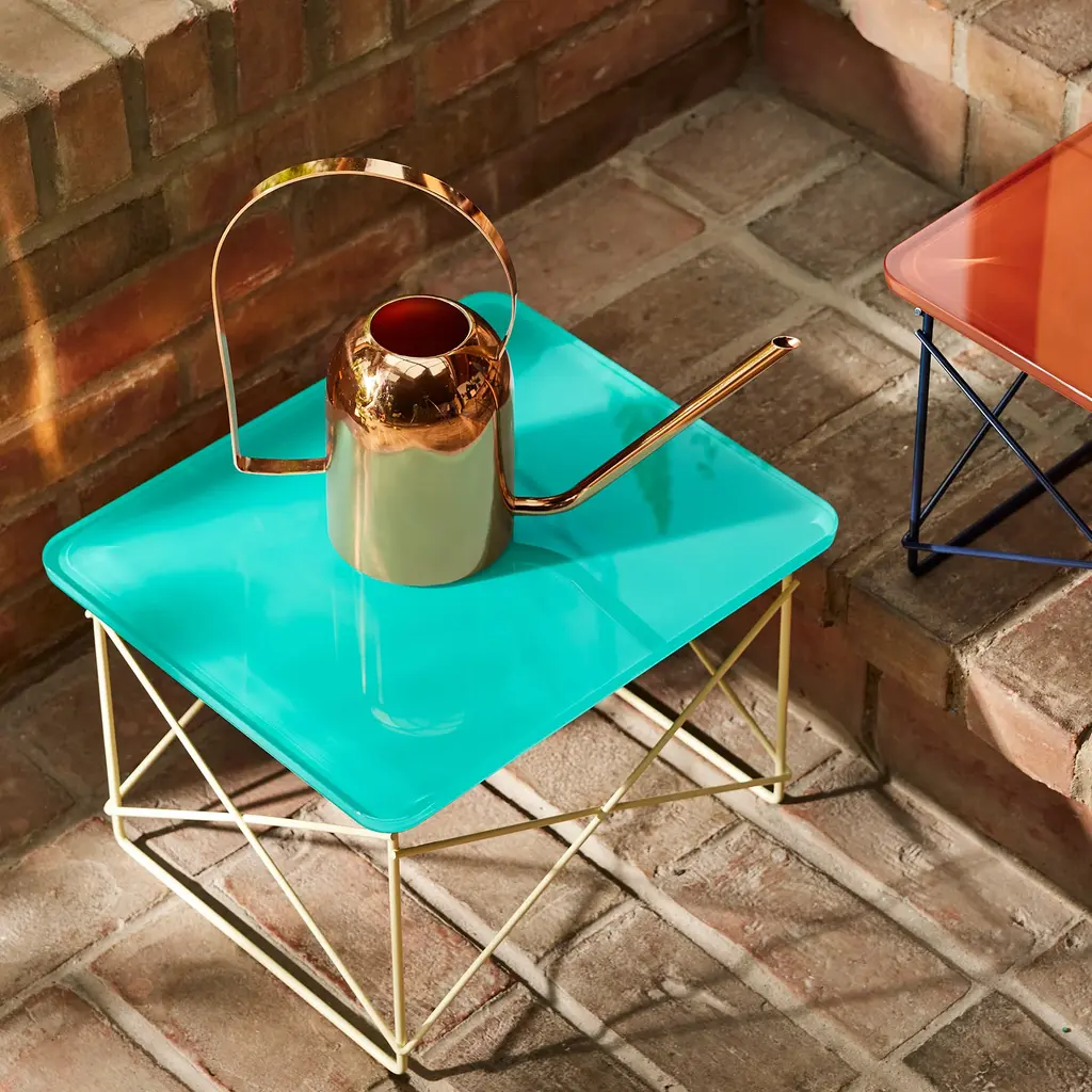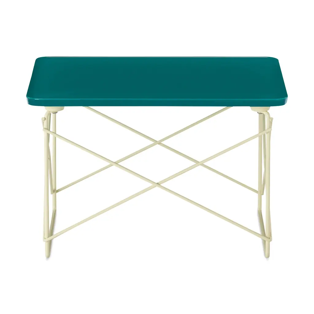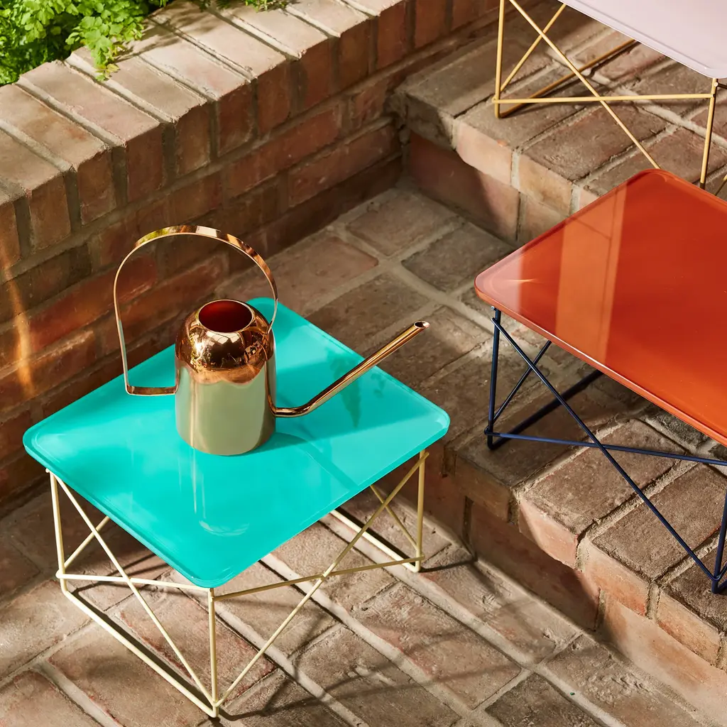 The Eames Wire Base Low Table was designed in 1950 by Charles and Ray Eames. For this Herman Miller x HAY version, the original’s wooden top is now rendered in an outdoor-safe tempered glass with a color palette chosen by HAY. The beveled edges of the cast-glass top create a delightful interplay of color and light. At 10” high, the table provides a handy surface for books or magazines, either as a bedside table or while lounging by the pool. Herman Miller, HAY and Charles and Ray Eames are all represented in MoMA’s collection. Features of the Herman Miller x HAY Eames Wire Base Low Table include: Designed by HAY and Charles and Ray Eames. Portable and lightweight so you can move it from room to room. Multiple tables can be grouped together to form a larger table surface. For indoor and outdoor use. Available in a color palette chosen by HAY, meant for endless interplay and combination. Minimal, elegant aesthetic ideal for smaller spaces. Resistance-welded steel cross-bracing adds stability to the base. This is an authentic Herman Miller Eames Wire Base Low Table, verified by an authenticity certificate included in every order. Manufactured in the USA by Herman Miller. Top is made from tempered, back-painted glass. Powder-coated steel base. Leveling floor glides. Measures 10h x 15w x 13.25”d.