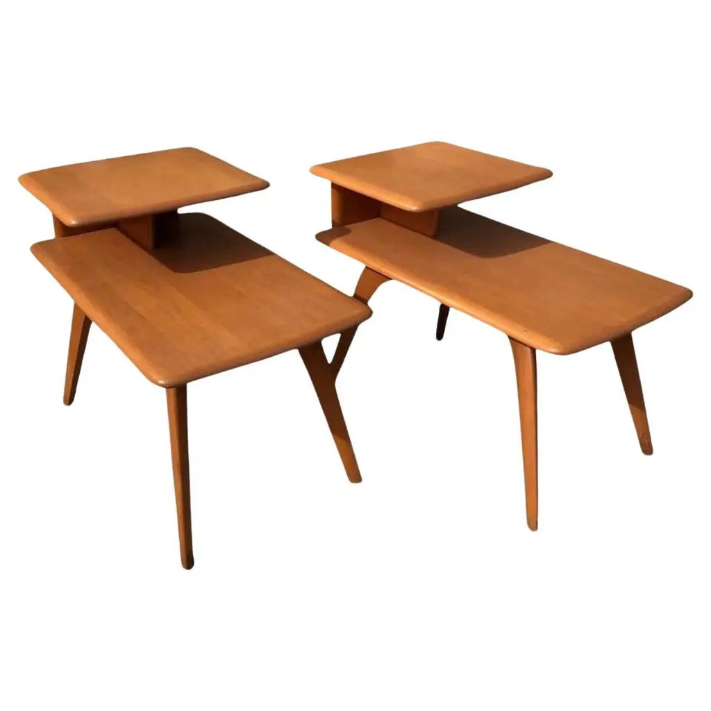Heywood Wakefield Bamboo Step Side Tables - Pair