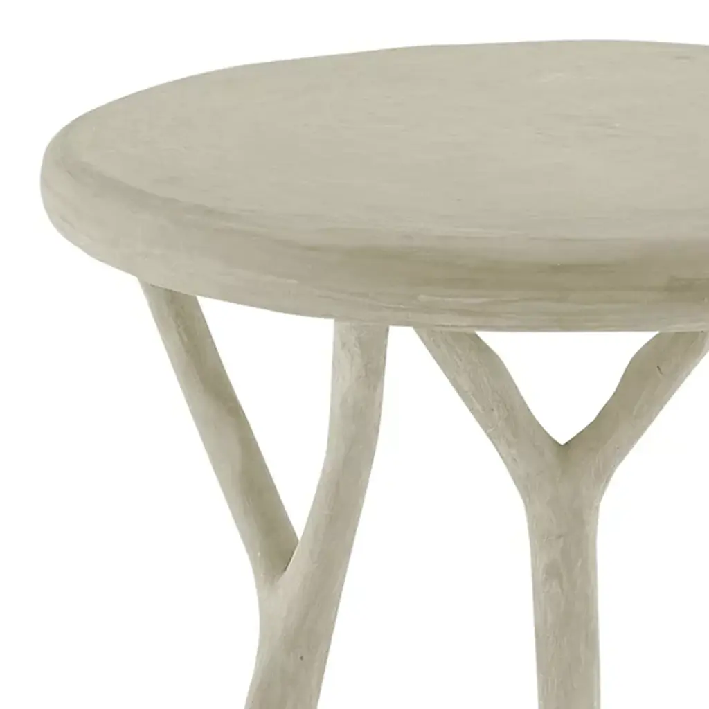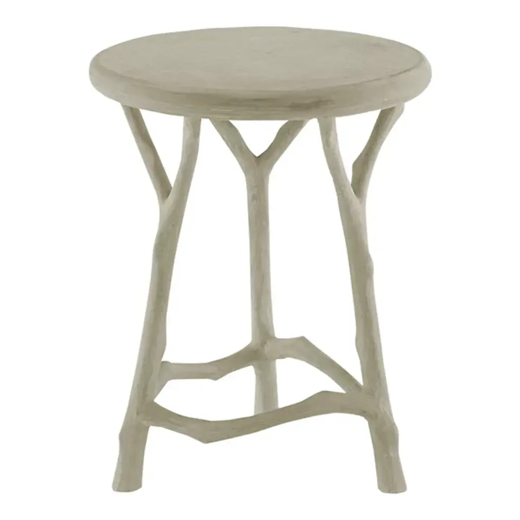 The Hidcote Accent Table from Currey & Company employs the traditional French faux bois technique, where concrete gets hand-applied over an iron framework to mimic wood grain patterns. This labor-intensive process creates realistic bark-like textures while providing the durability advantages of concrete construction. Each piece displays unique variations, as artisans apply the concrete by hand, following the contours of the underlying metal structure. Adjustable glides enable leveling on uneven surfaces, making this table suitable for both indoor and outdoor use.