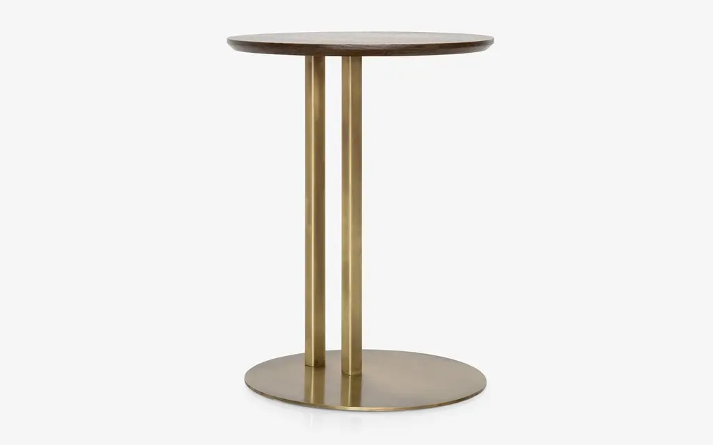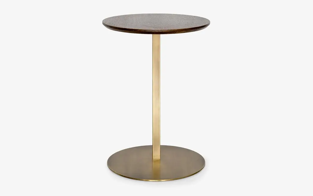 Hidden Brass Coated Metal & Oak Veneer Side C Table