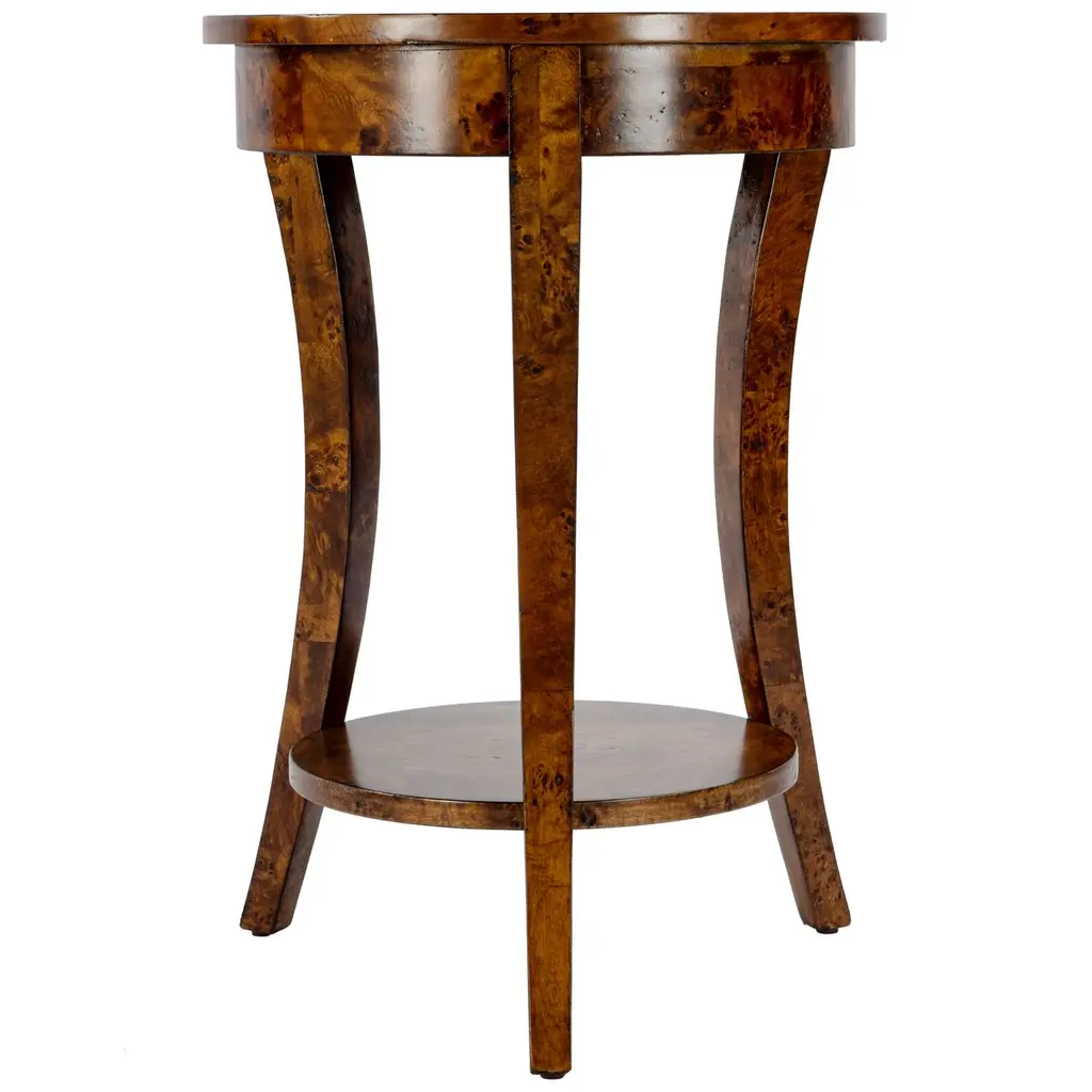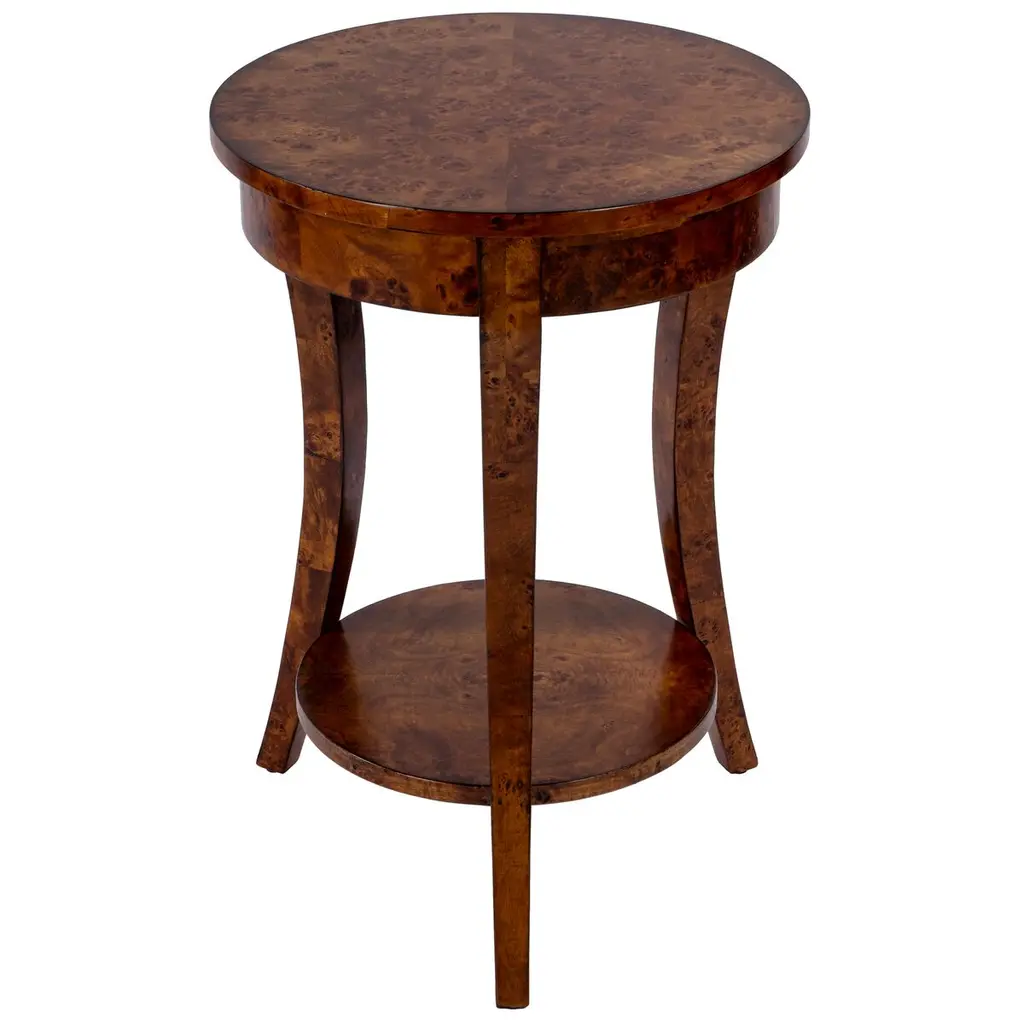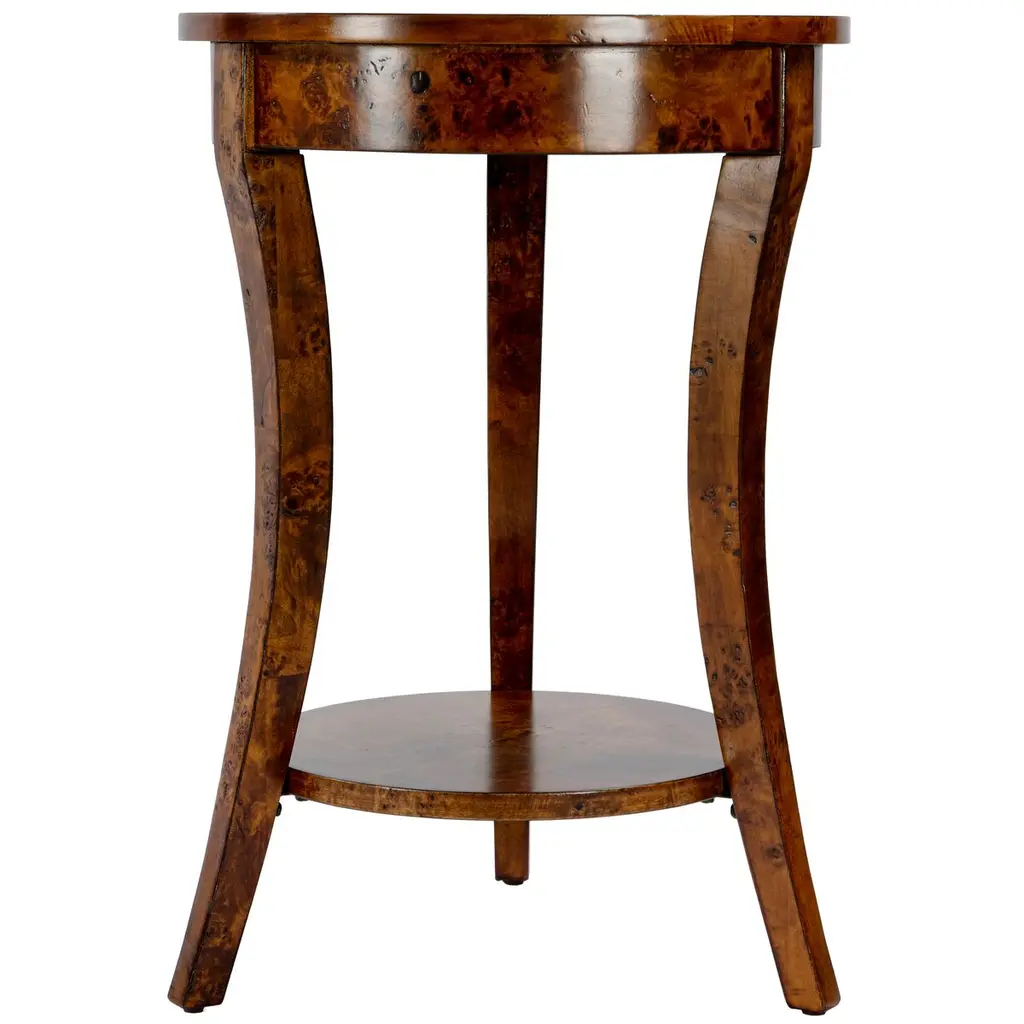 The Higgins Round Side Table is perfect for any living space, featuring an exceptional blend of wood using select solids and choice veneers. It includes a lower shelf for storage, adding a contemporary feel to your decor.