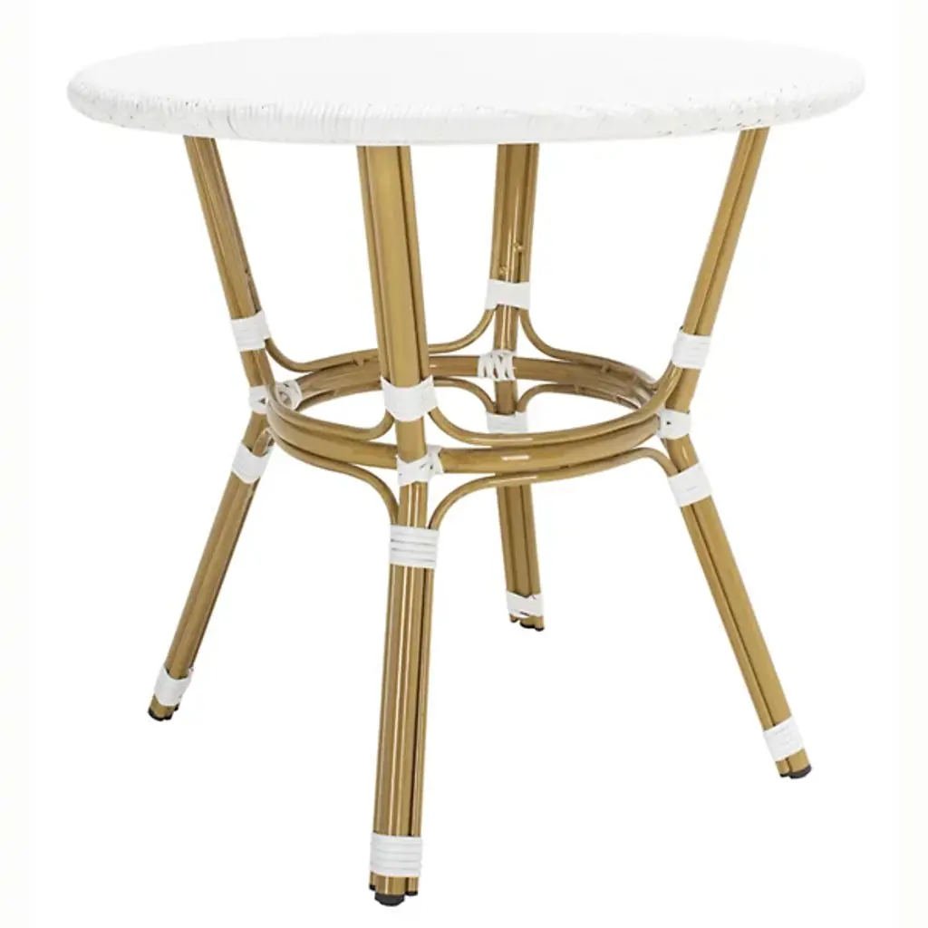 Sip your morning espresso in style and dine like Parisian with the Hikaru classic rattan bistro side table. Endlessly versatile, it blends into any kitchen, outdoor room or casual dining room with its clean white pattern and natural wicker construction.