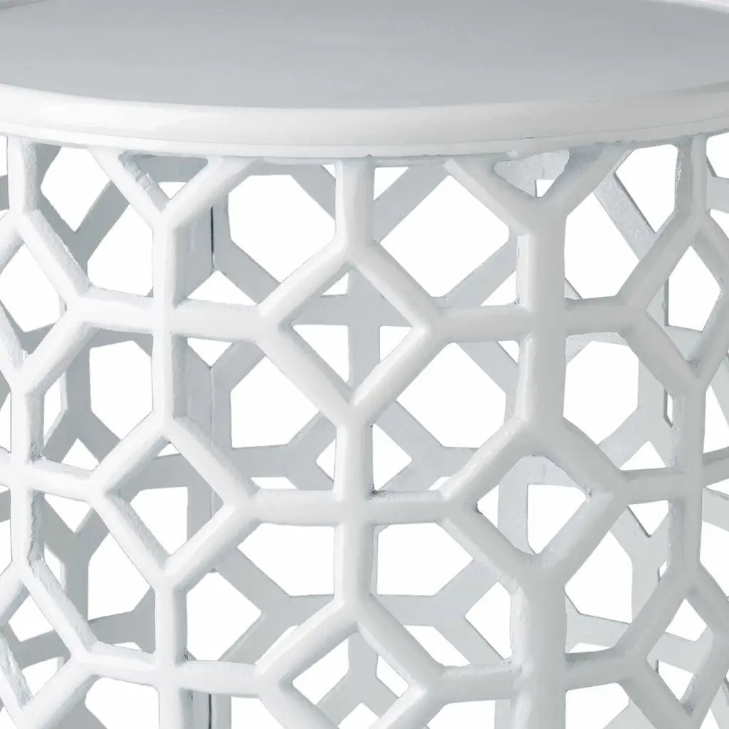 Hinunangan White Geometric Pattern End Table - 17"h X 14"w X 14"d