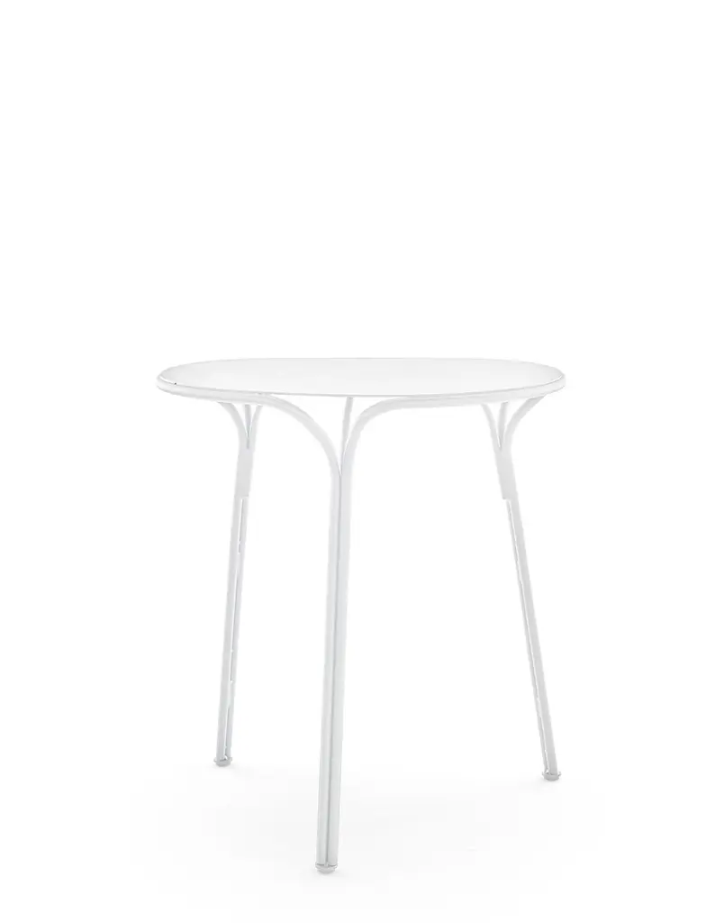 HIRAY takes metal, one of the most important materials for the greening of the Kartell catalogue, and uses the welded wire process to shape it. The result is an essential and functional product that is nevertheless rich in emotion. Metal wires form well-defined yet lightweight structural parts of the collection’s chair, chair with arms, bistro table, armchair, divan and side table. The various articles come in white, Bordeaux, black and green.