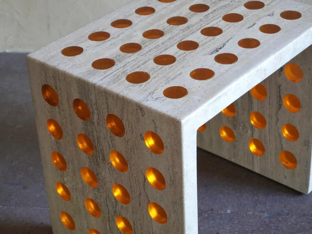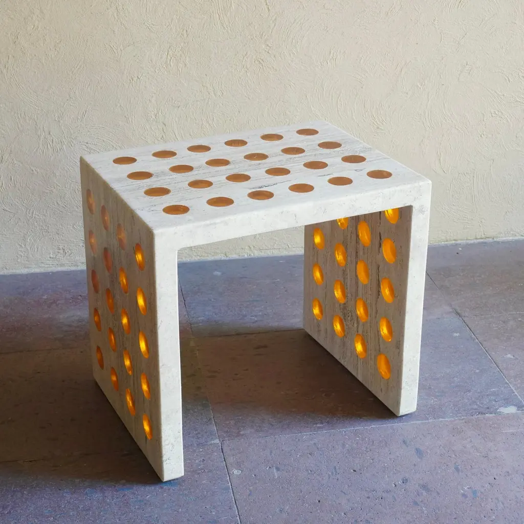 Hive I, Resin And Travertine Side Table By Paola Valle
