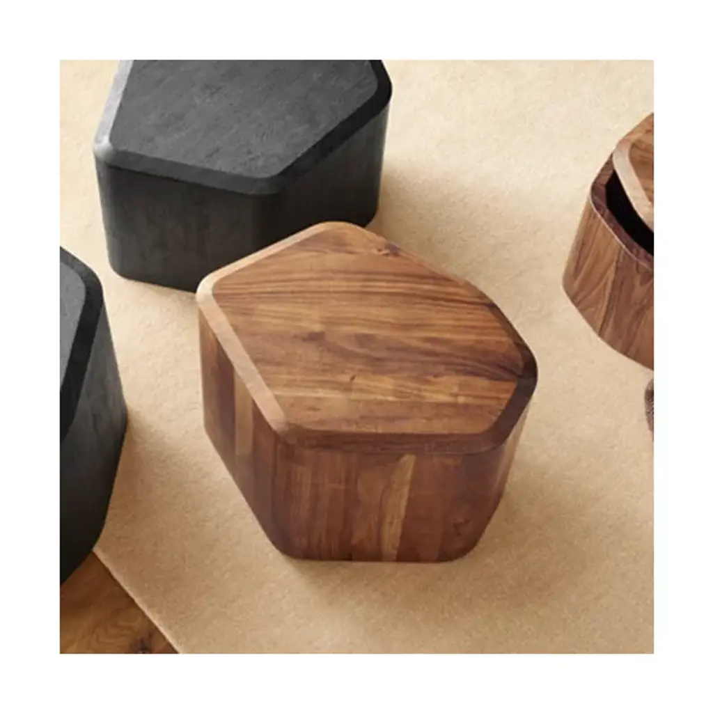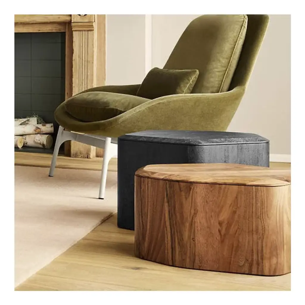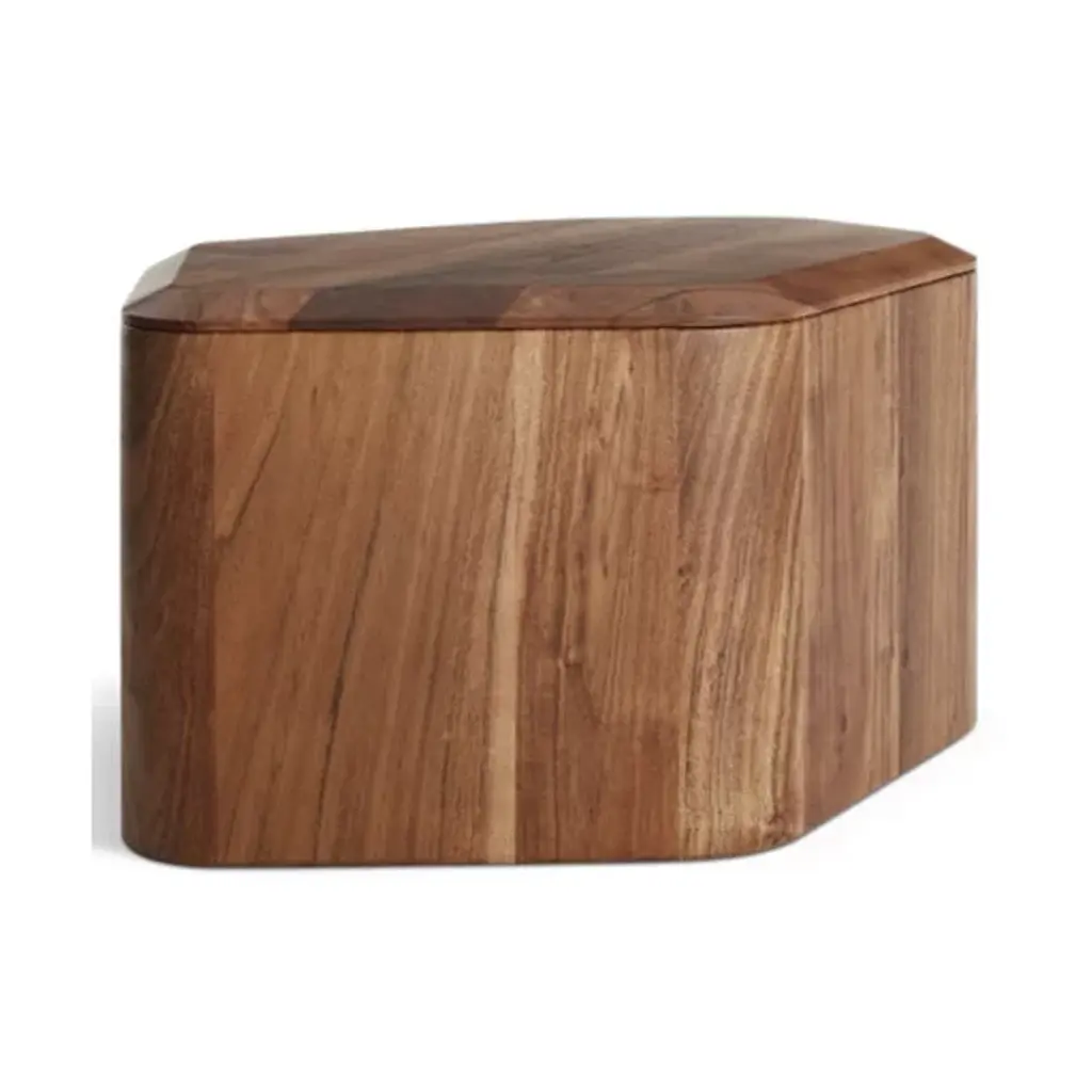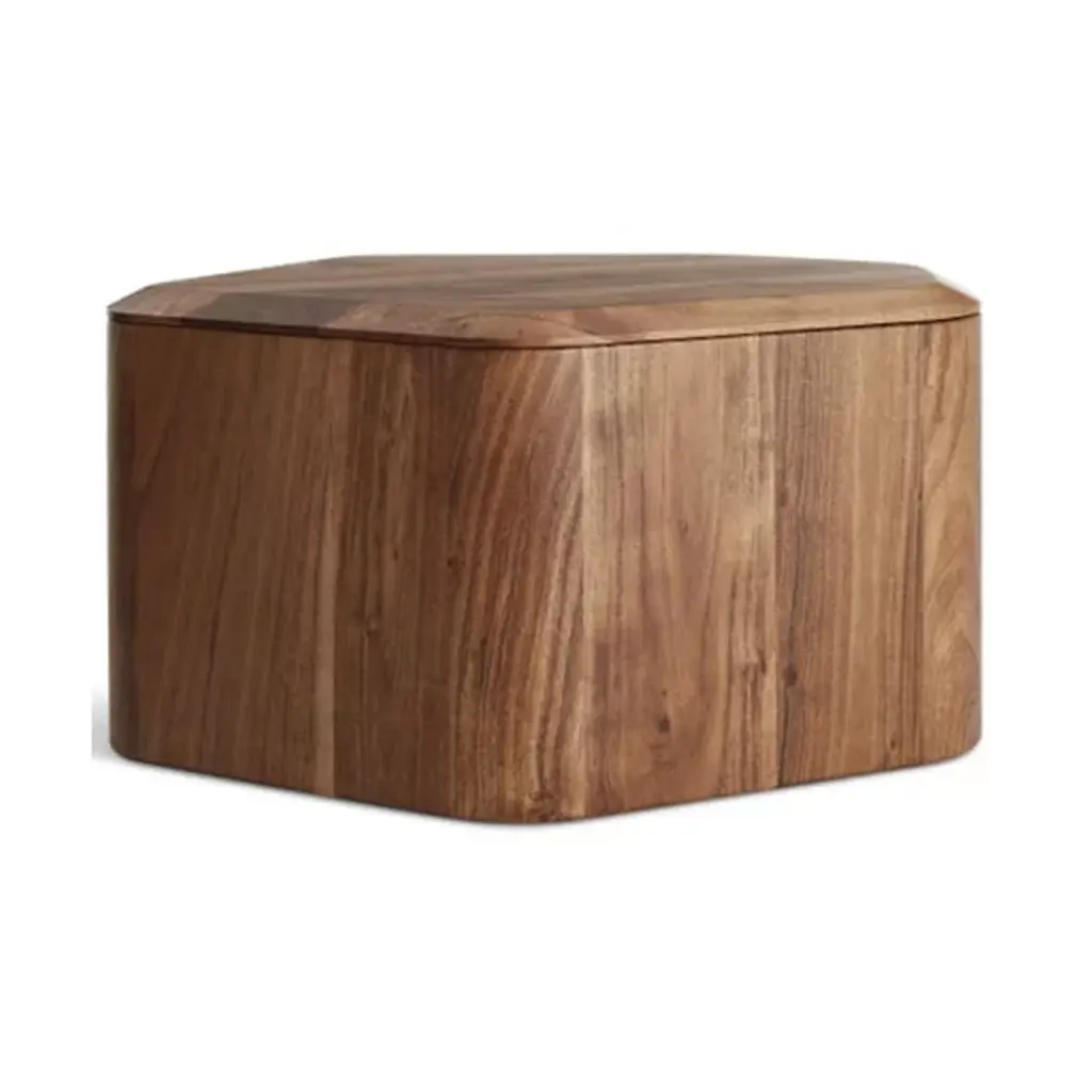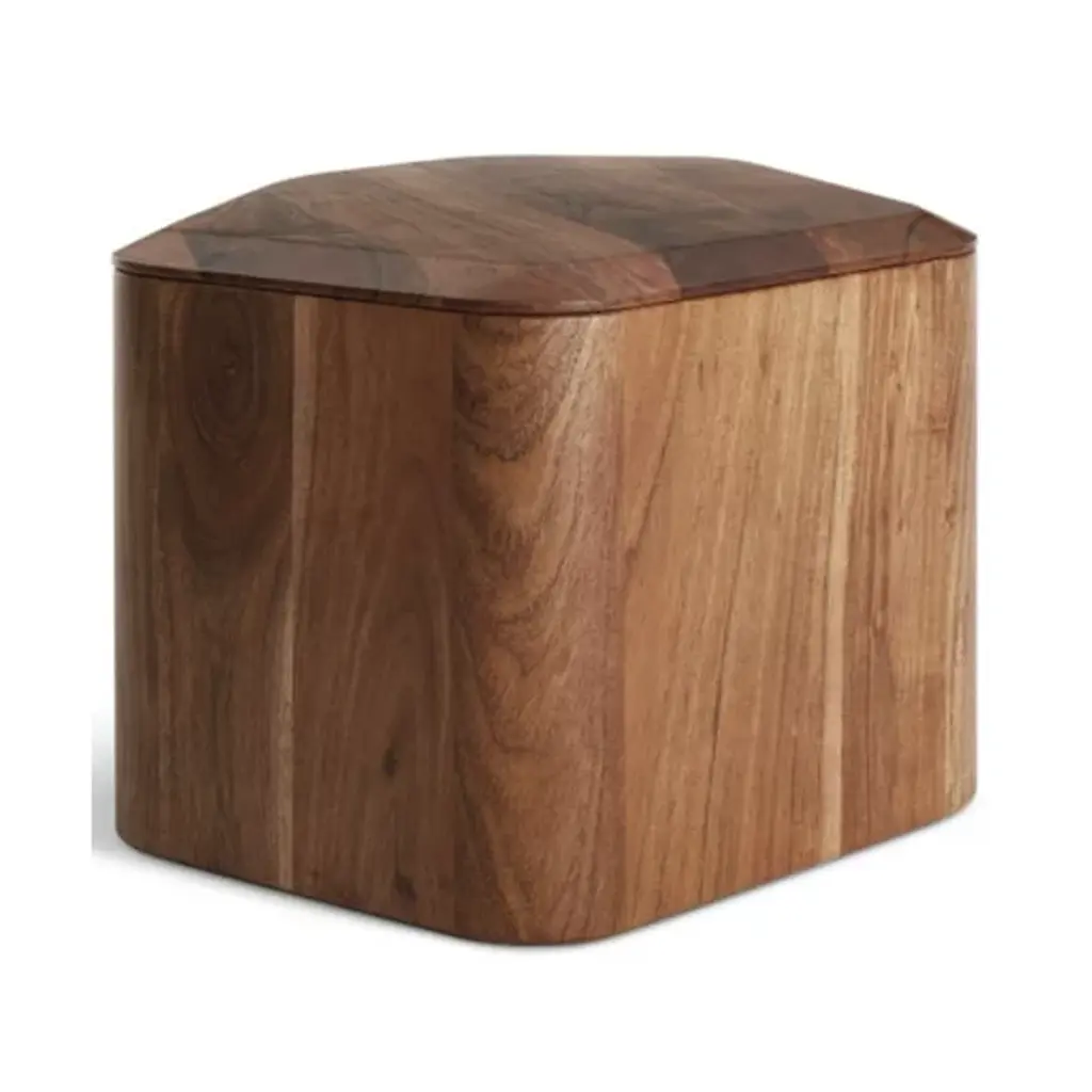 An appealing, functional sculpture, stating that the less is seen, the better. Give blankets, books, or unsightly items a quick, hidden home inside the Hoard Hitch Side Table with Storage from Blu Dot. The table’s simple yet clever design resonates in the contemporary setting. It looks and feels time-tested as a wood construction from top to bottom. Artisans hone the wood into an abstract form whose smooth sides look great as part of a cluster. The tabletop offers a smooth surface for reading materials and refreshments. Removing the tabletop lid reveals a cavity for unseen storage.