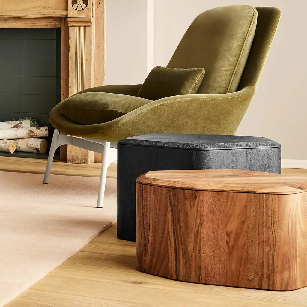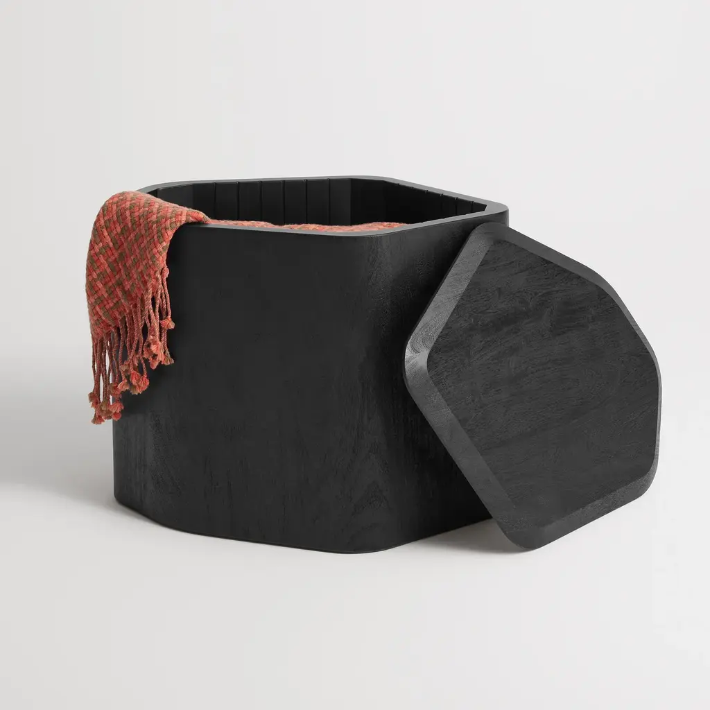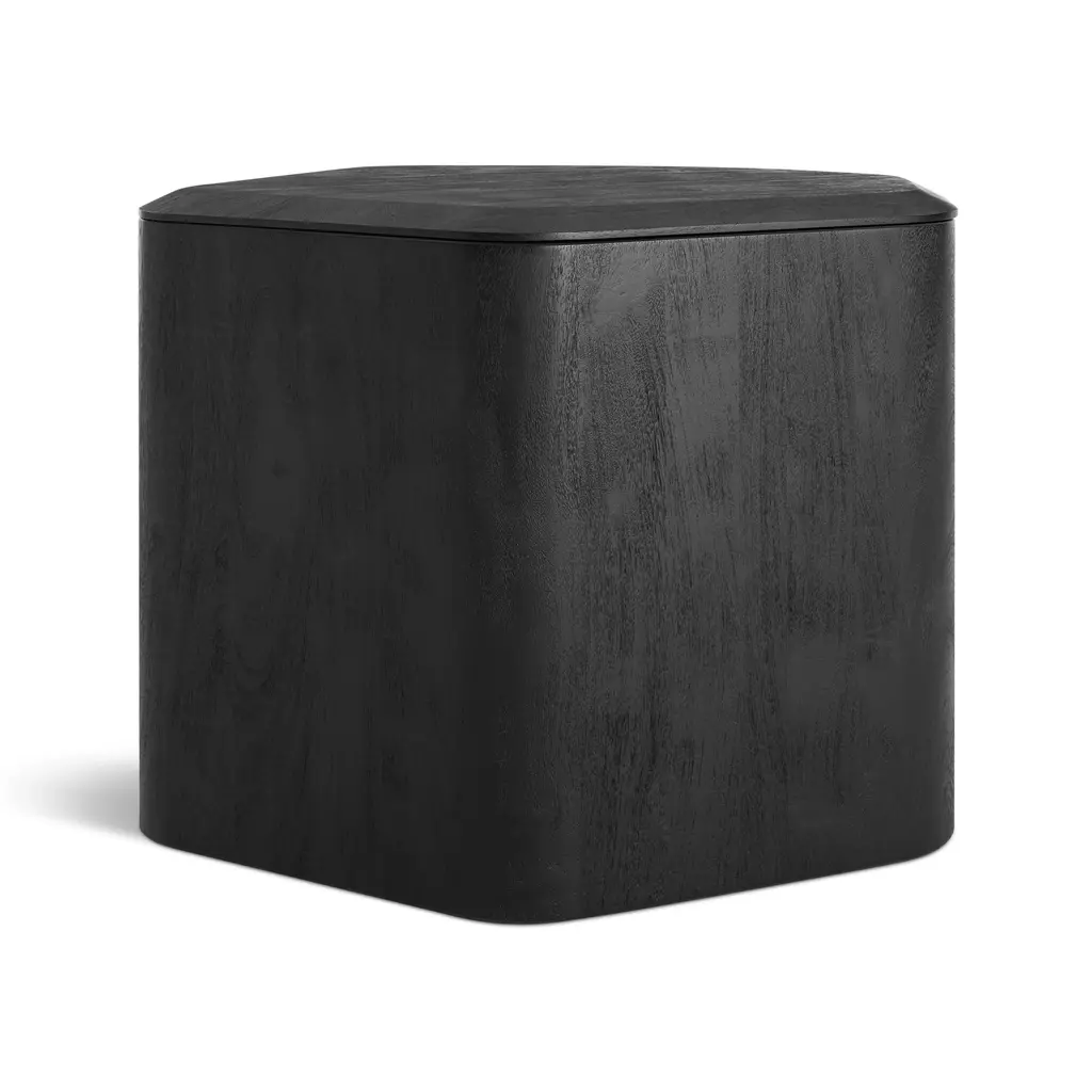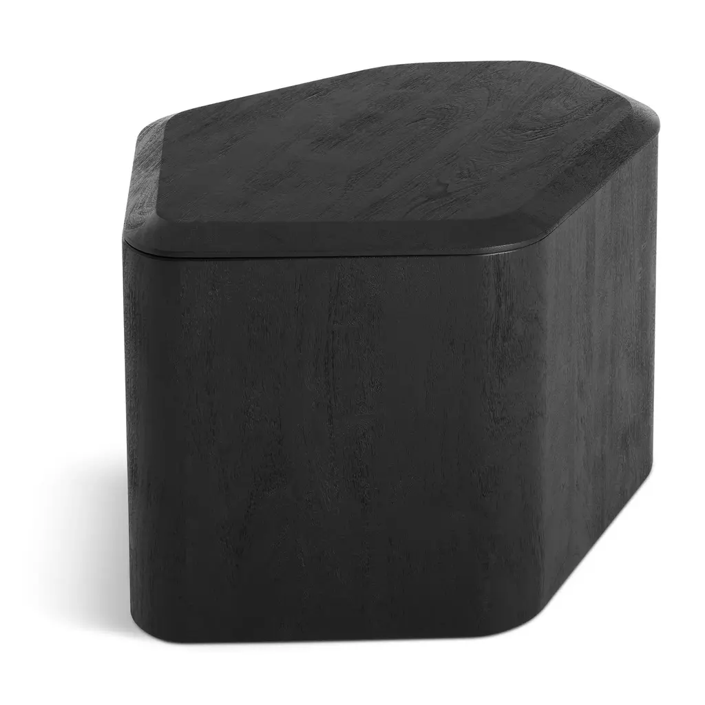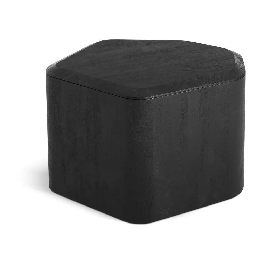Nothing to see here. Solid acacia wood forms an organic table surface and a clandestine storage space for blankets and minor messes. Removable beveled top provides extra polish and panache. Sufficiently lovely on its own, or nest with other sizes for an elegant coffee table cluster.
