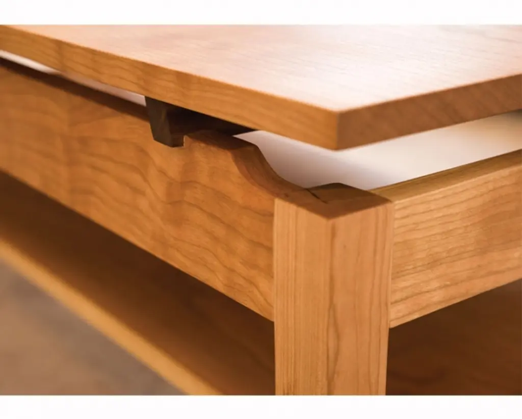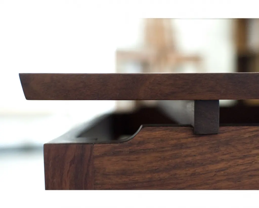 The Hochberg end table is our contemporary take on traditional end table design. It features the signature Hochberg risers that give the illustion of a floating top. These risers can be made out of the standard wood species or a contrasting wood. This end table also has a slight curve on the top to give it a slight boat shape.