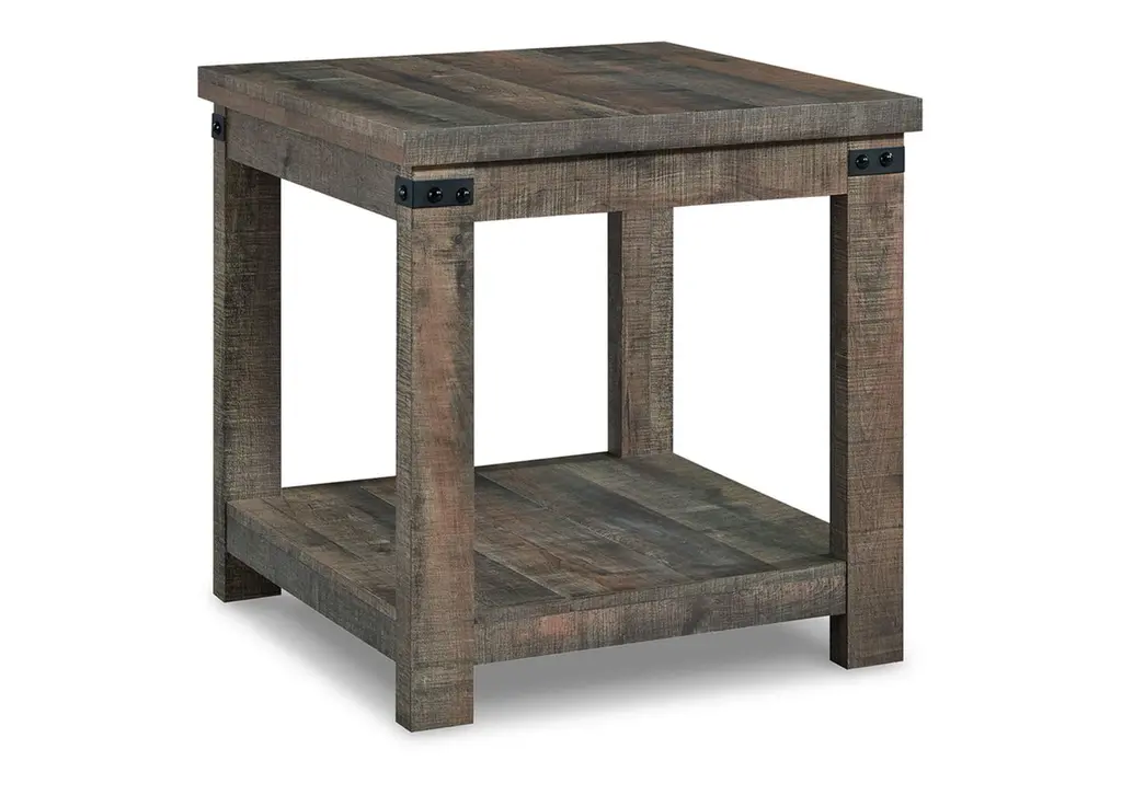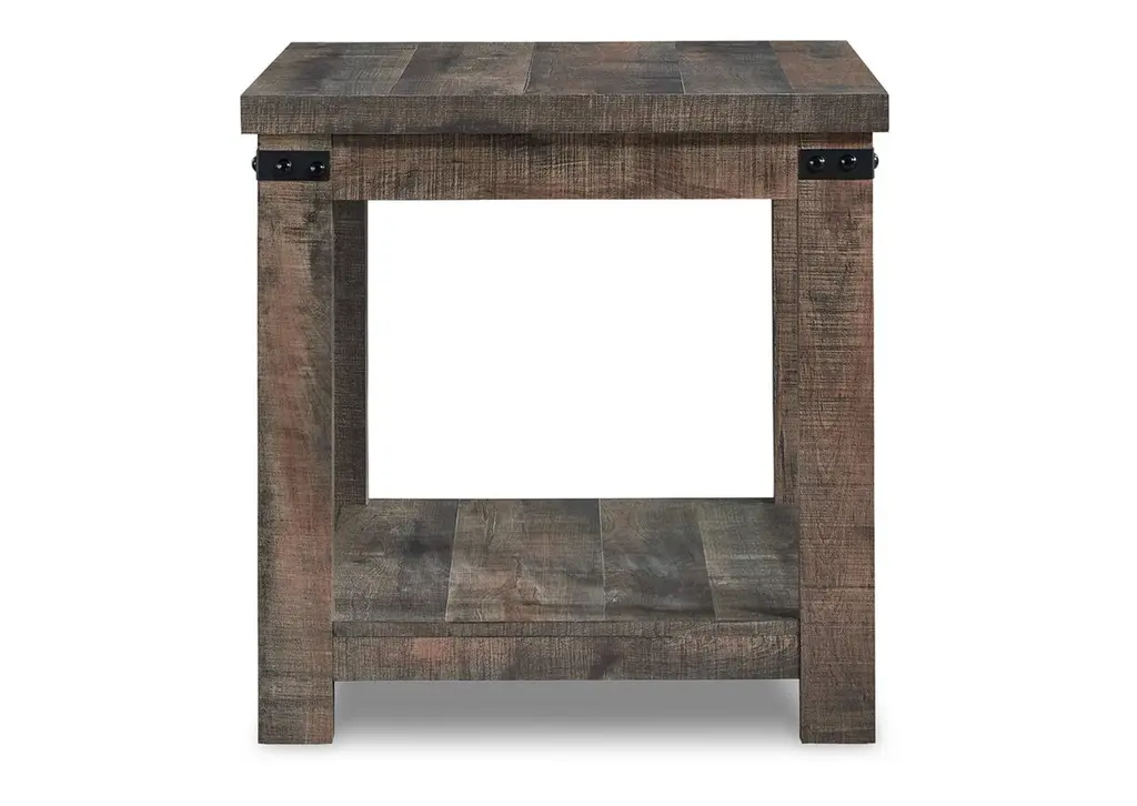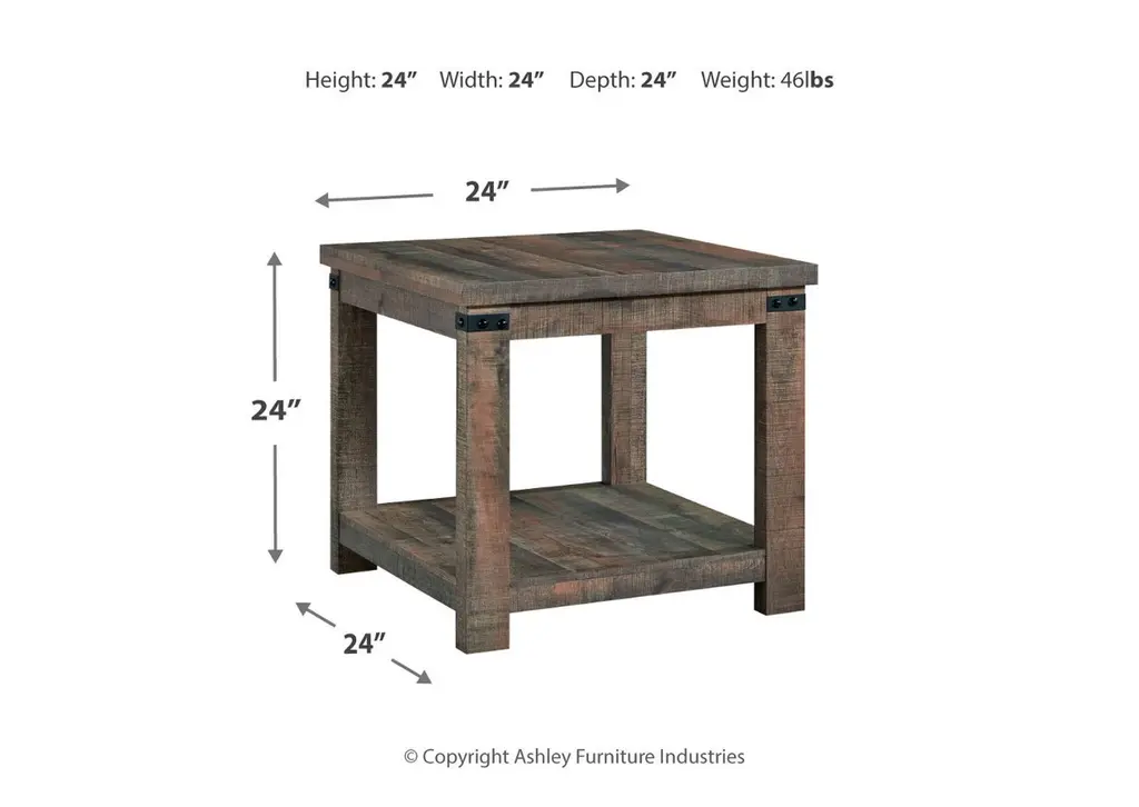 Keep your aesthetic chic and approachable with the charming Hollum end table. This piece has an effortless beauty, with a replicated aged barn wood pattern and matte black metal accents adding vintage-inspired elegance. Combining elements of fashion and function, the lower shelf is ideal for displaying decor or holding a storage basket. Weight 45.000 lbs. (20.25kgs.)