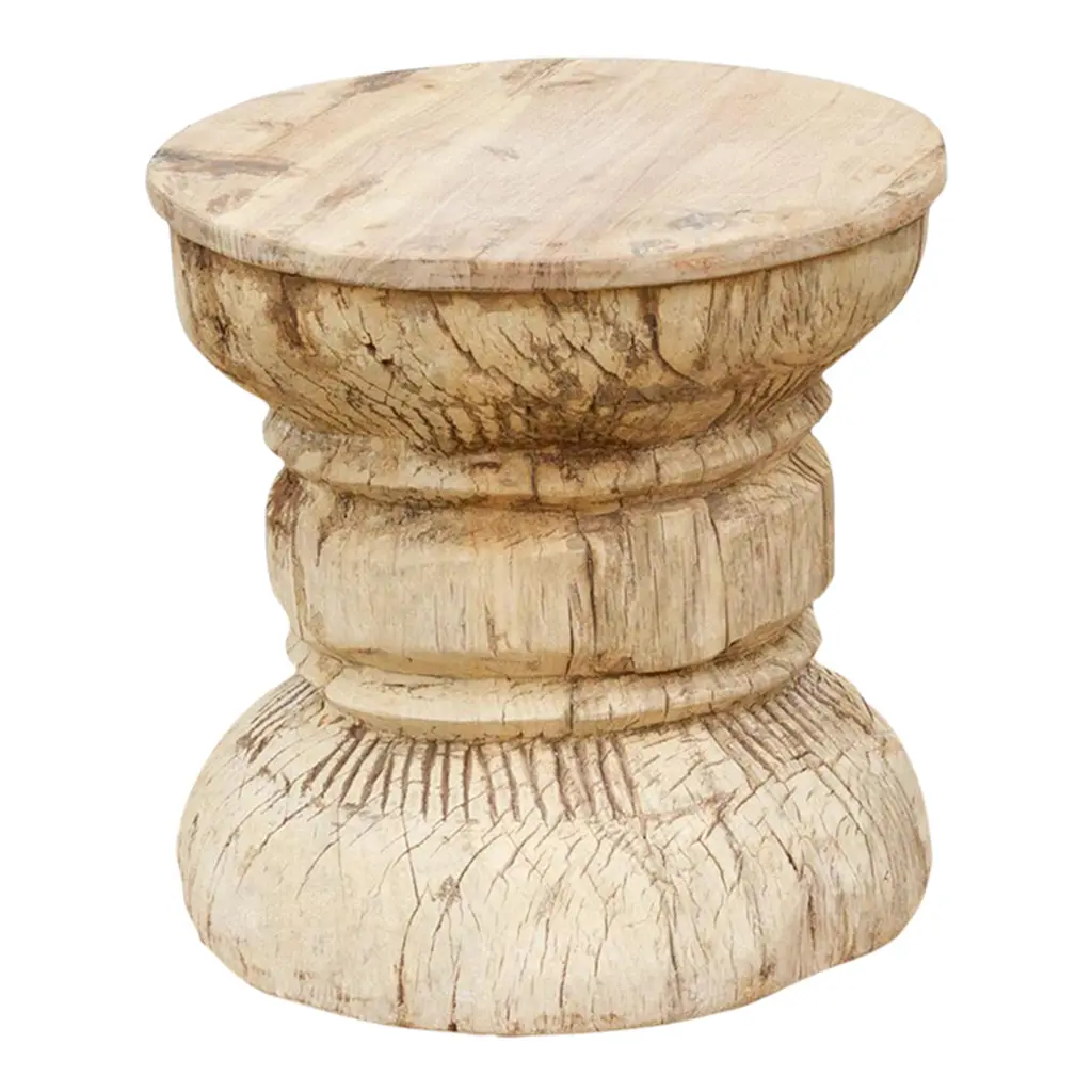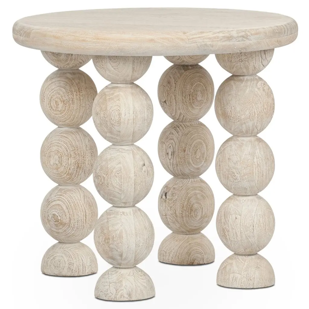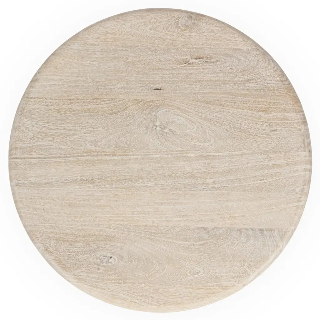 Holzer Coastal Beach Cream Mango Wood Round End Table