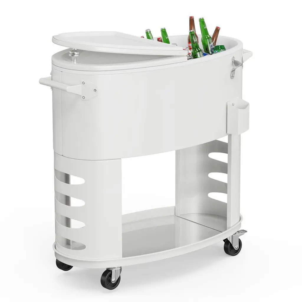 Transform your outside space with the small outdoor table from HOMCOM, a versatile 3-in-1 design that serves as a chic ice cooler table, storage box, and patio end table. Keep drinks chilled for up to 4 hours with the 2.6 gal stainless steel bucket. Its stylish concrete look and smooth gray finish make it a great addition to any pool party or barbecue setup.