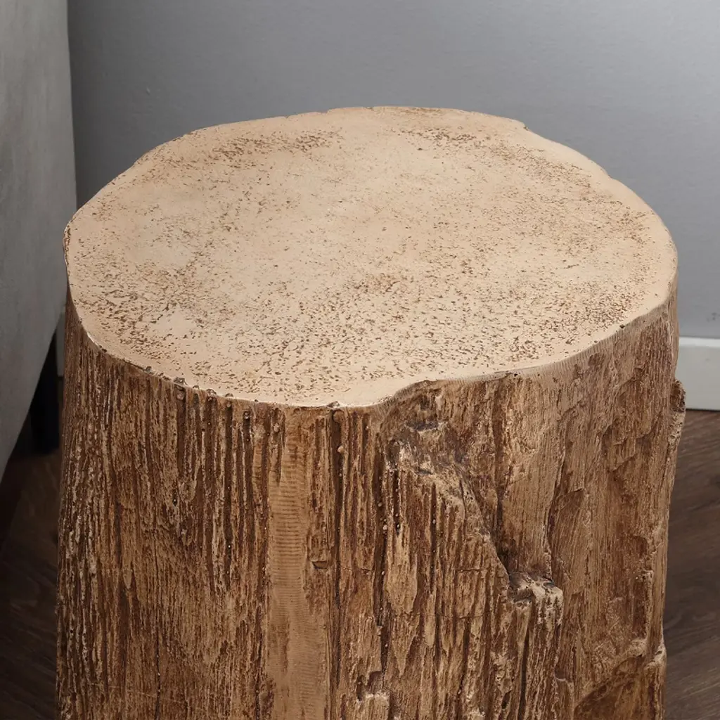 Homcom Tree Stump Stool, Decorative Round Side Table, Concrete End Table With Wood Grain Finish, Indoors And Outdoors Use
