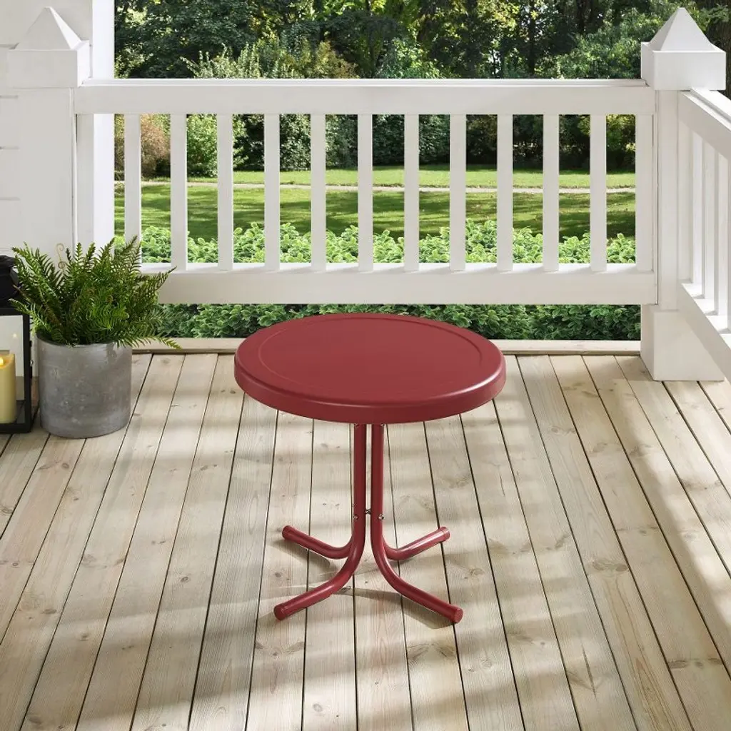 Homestock Griffith Outdoor Metal Side Table, Dark Red Satin